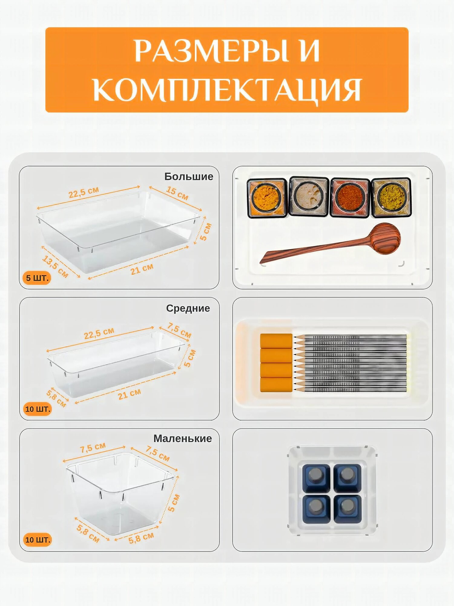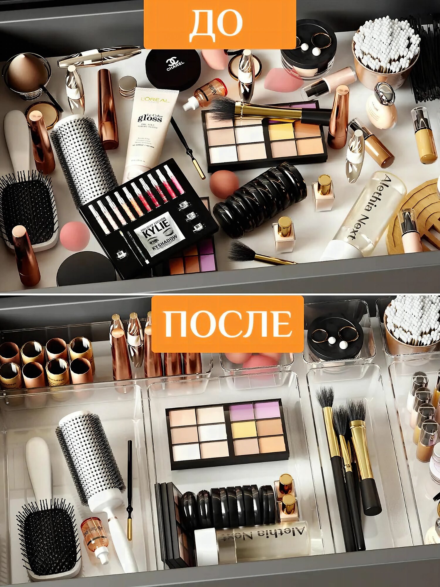 Набор органайзеров для косметики, канцелярии и кухни 25 шт, Прозрачный пластик, Россия интересное: