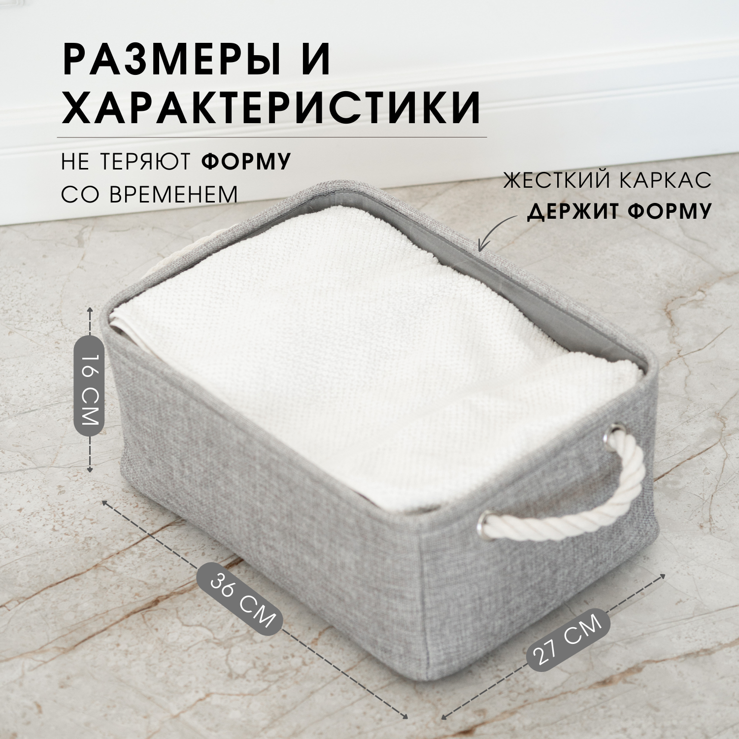 Текстильная корзина для хранения / HOMO / цвет: серый/бежевый, 36*27*16 см