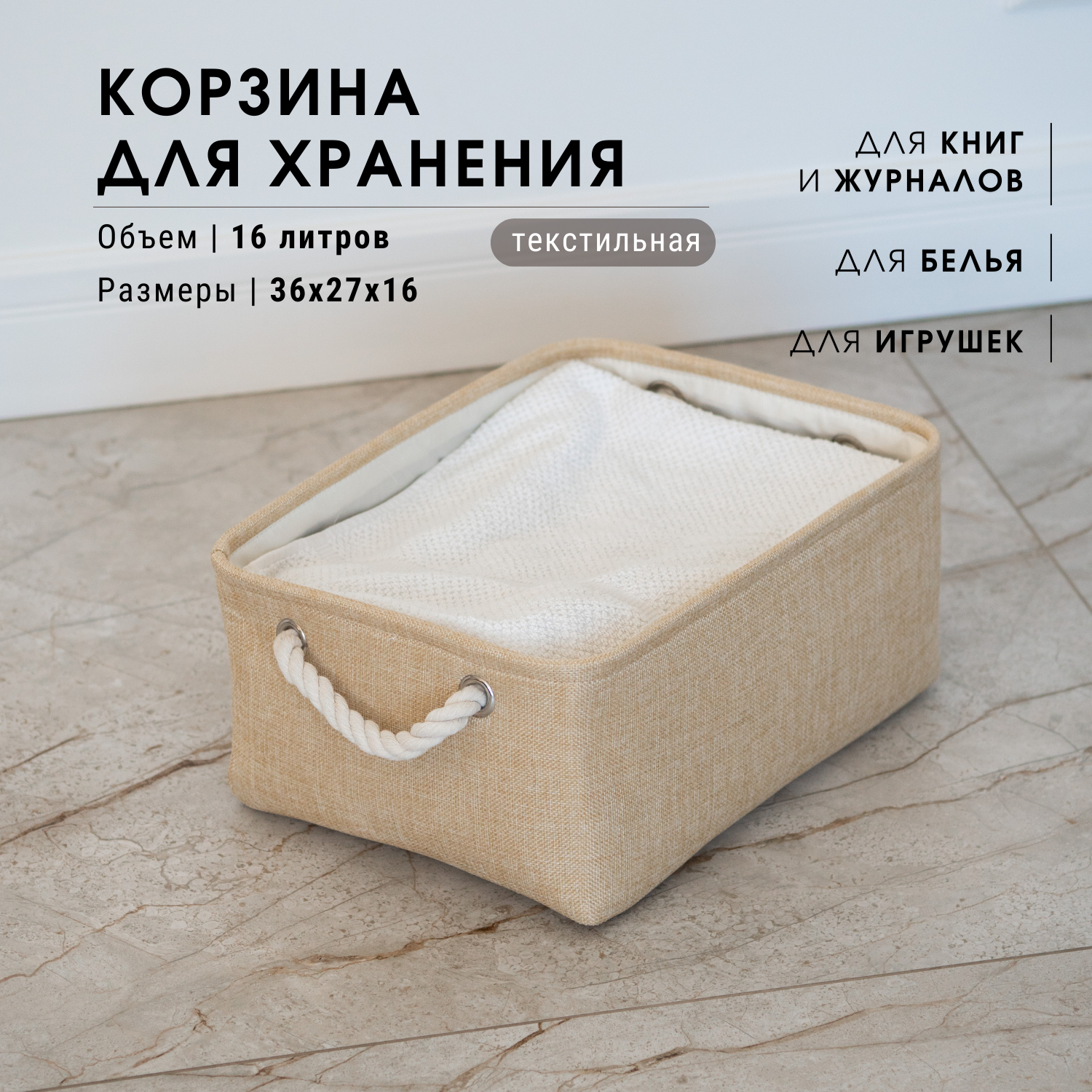 Текстильная корзина для хранения / HOMO / цвет: бежевый интересное: