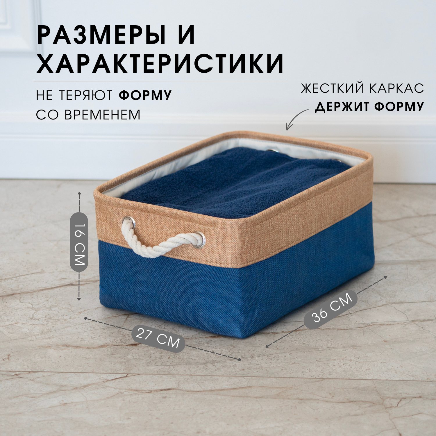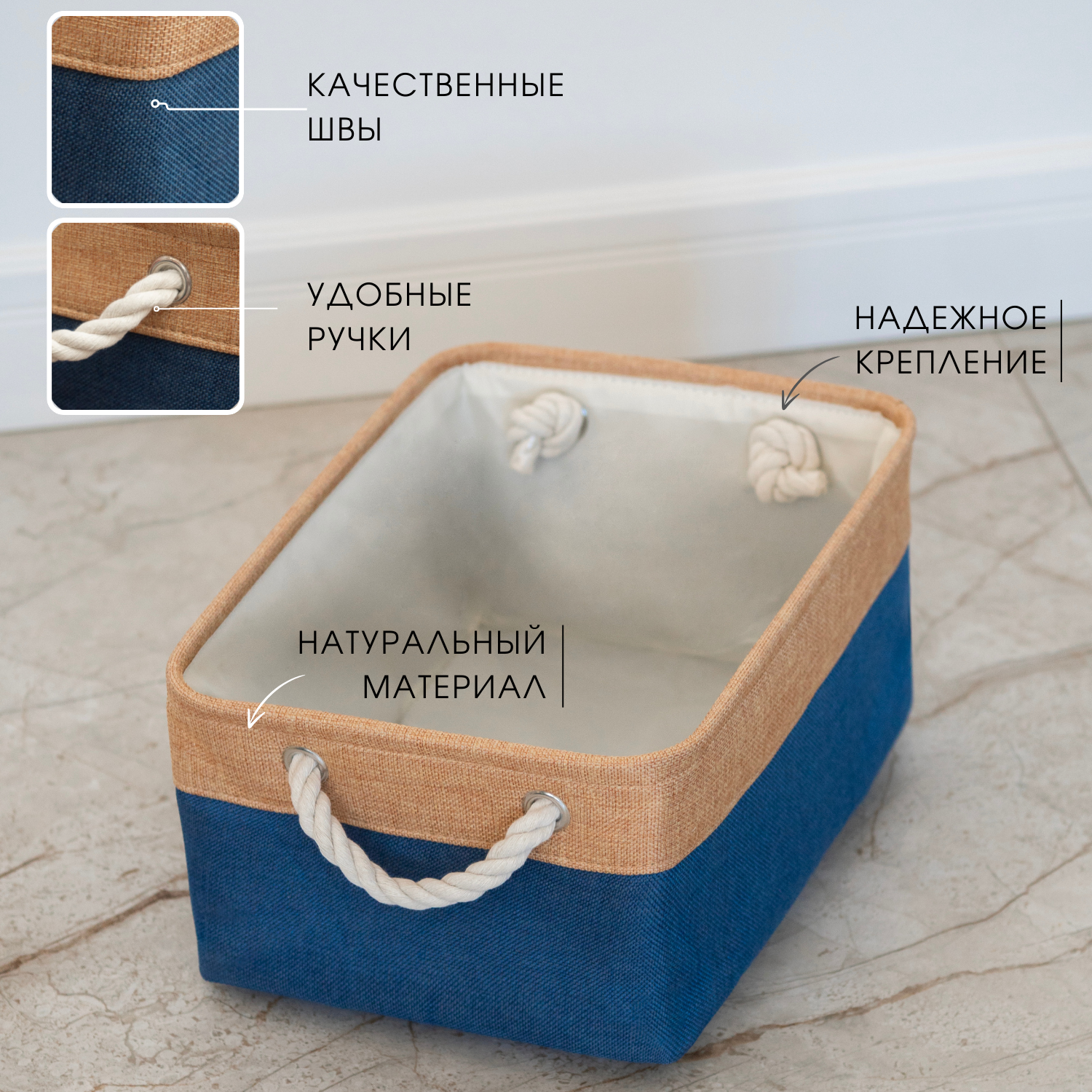 Текстильная корзина для хранения / HOMO / цвет: синий/бежевый интересное:
