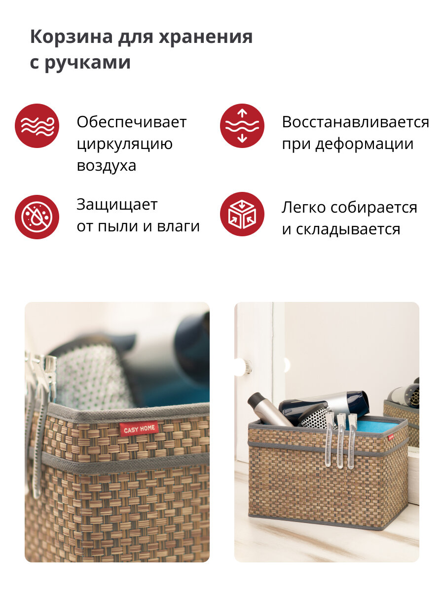 Корзина для хранения Casy Home BA-071, с ручками, прямоугольная, 28x18x18 см интересное: