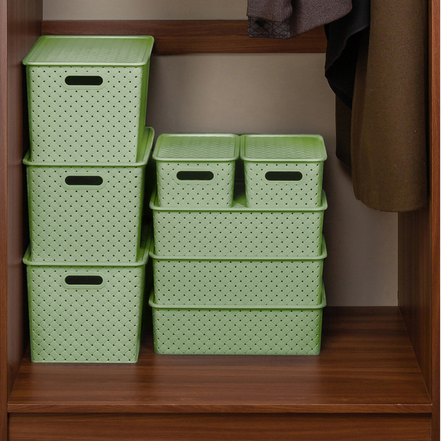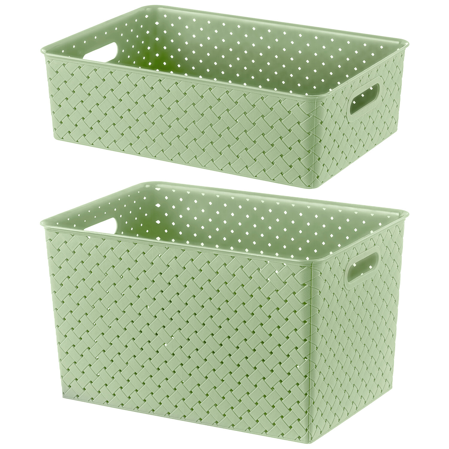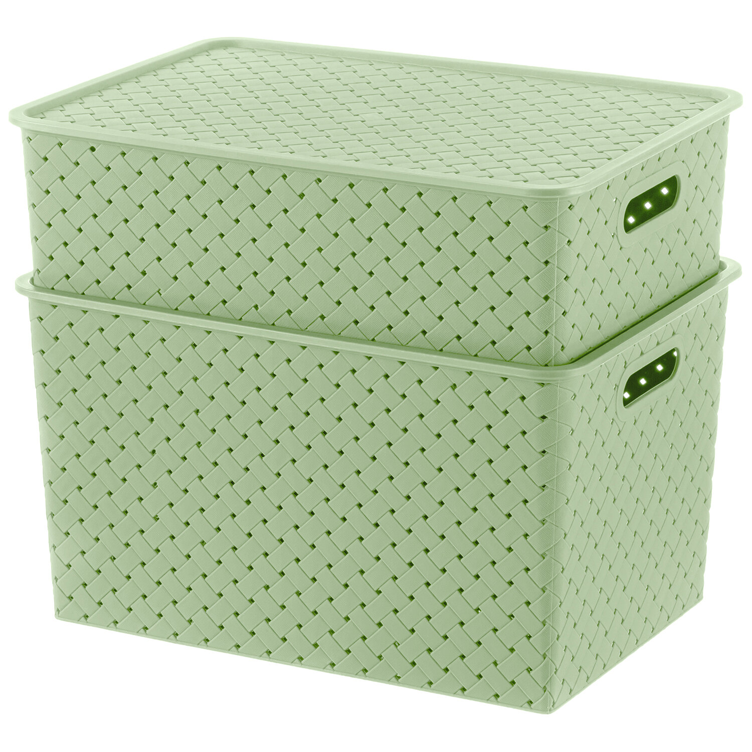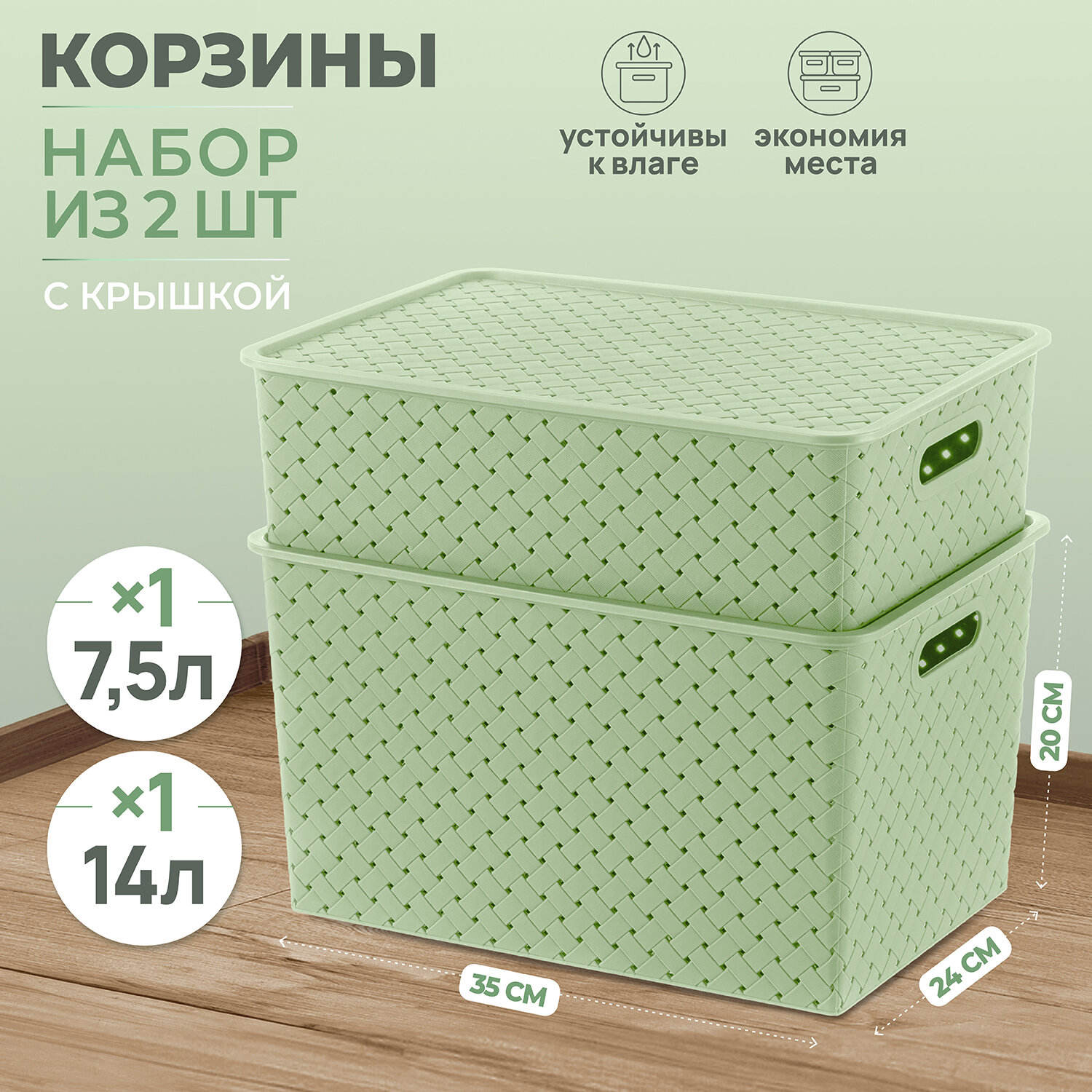 Корзинка, коробка для хранения с крышкой 2 шт EL Casa Береста, 7,5 л, 14 л, светло-оливковый, набор интересное: