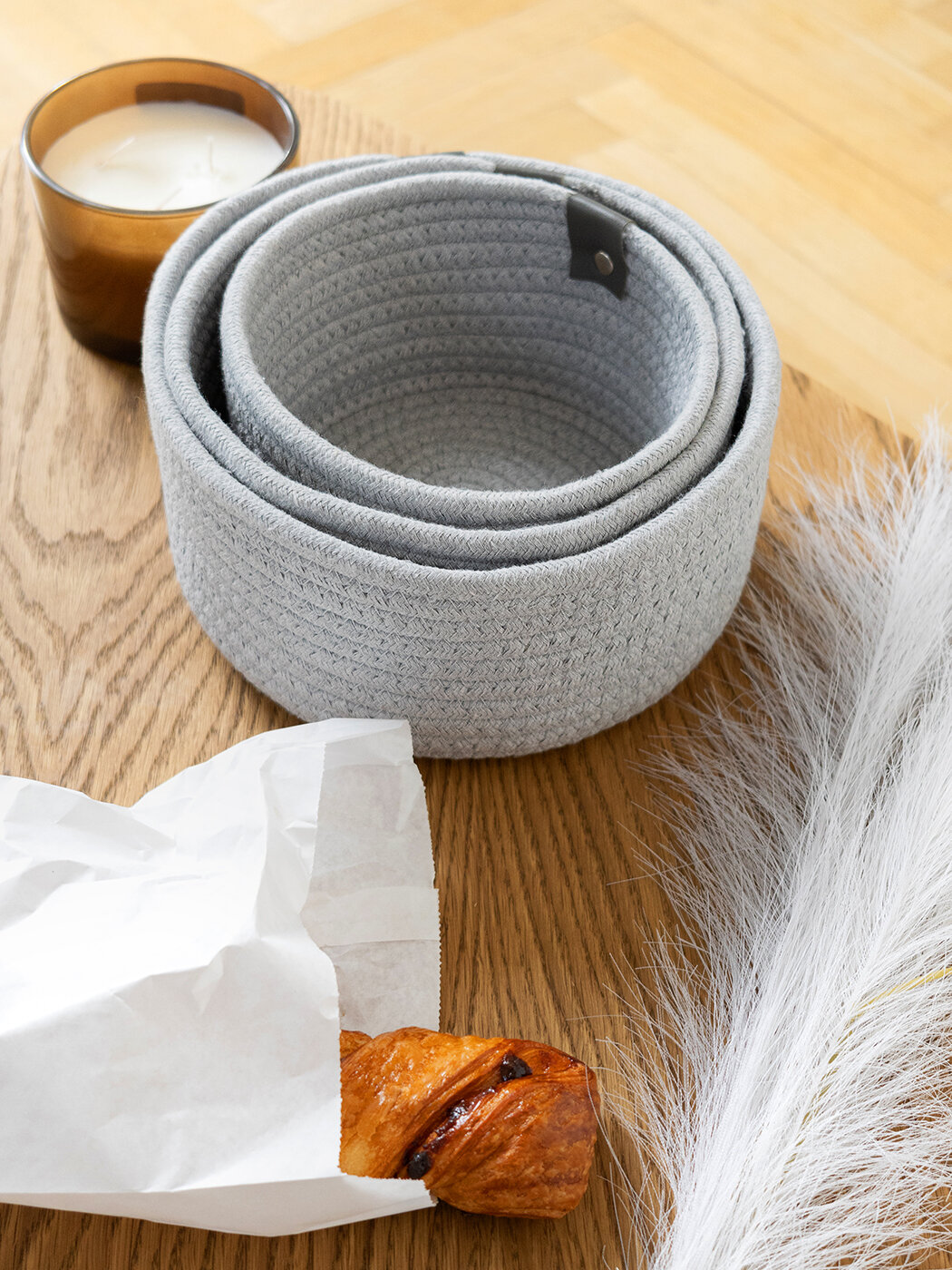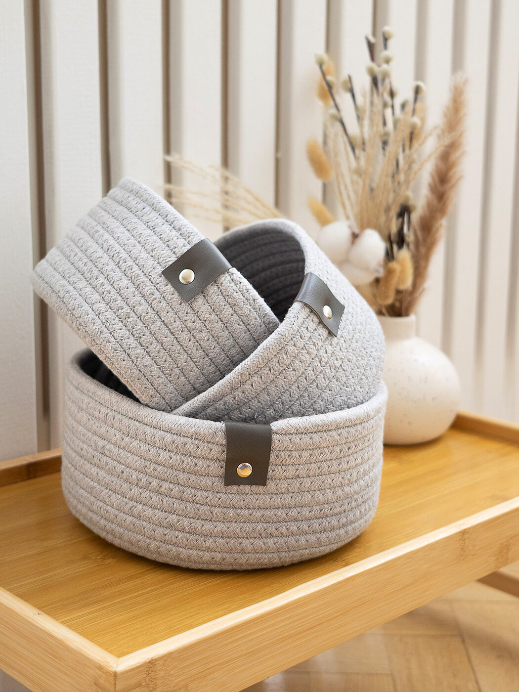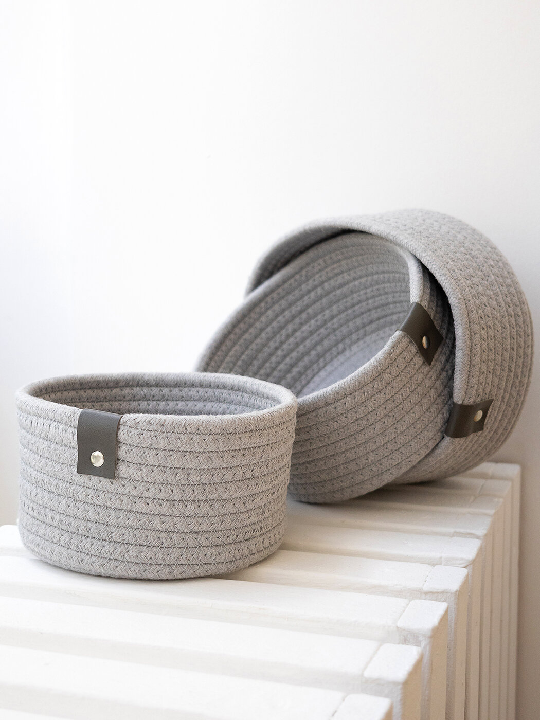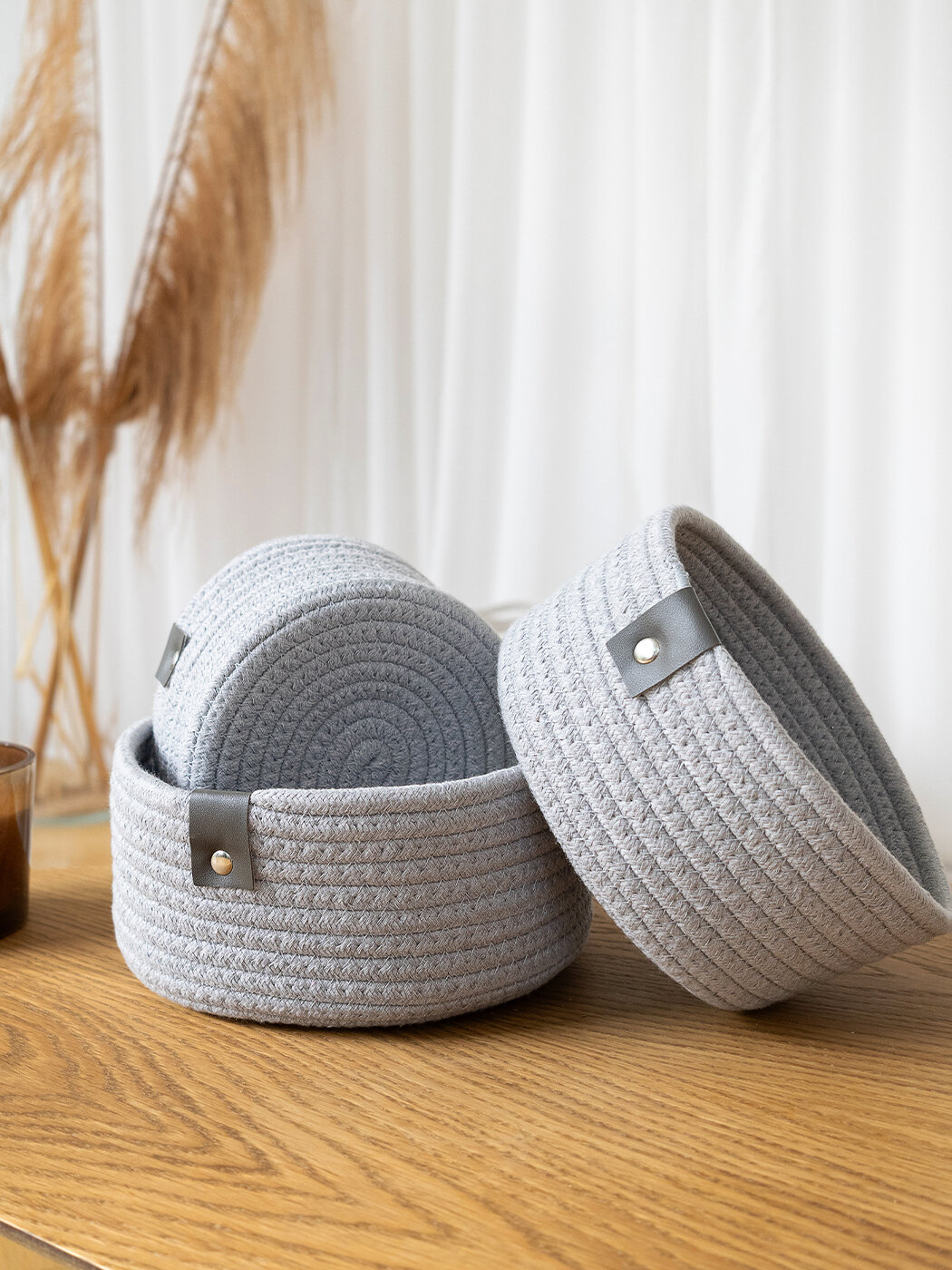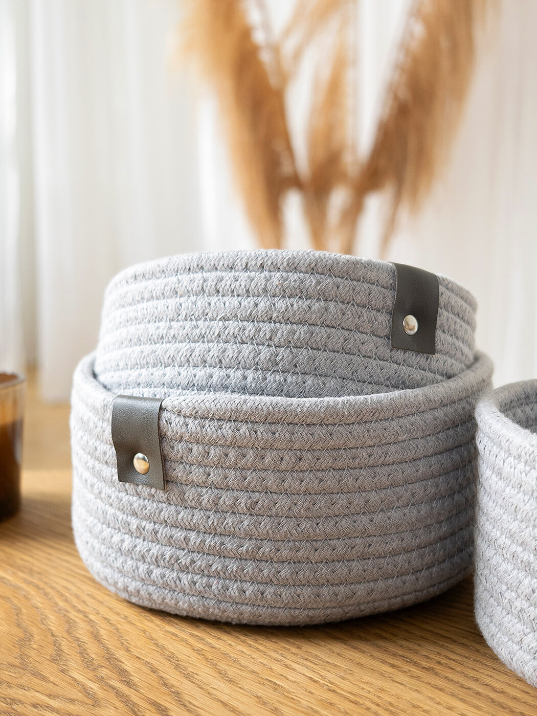 Купить Комплект (3 шт.) круглых корзинок органайзеров для дома, хранение мелочей, косметики и декора/ плетеные, серые, Astera