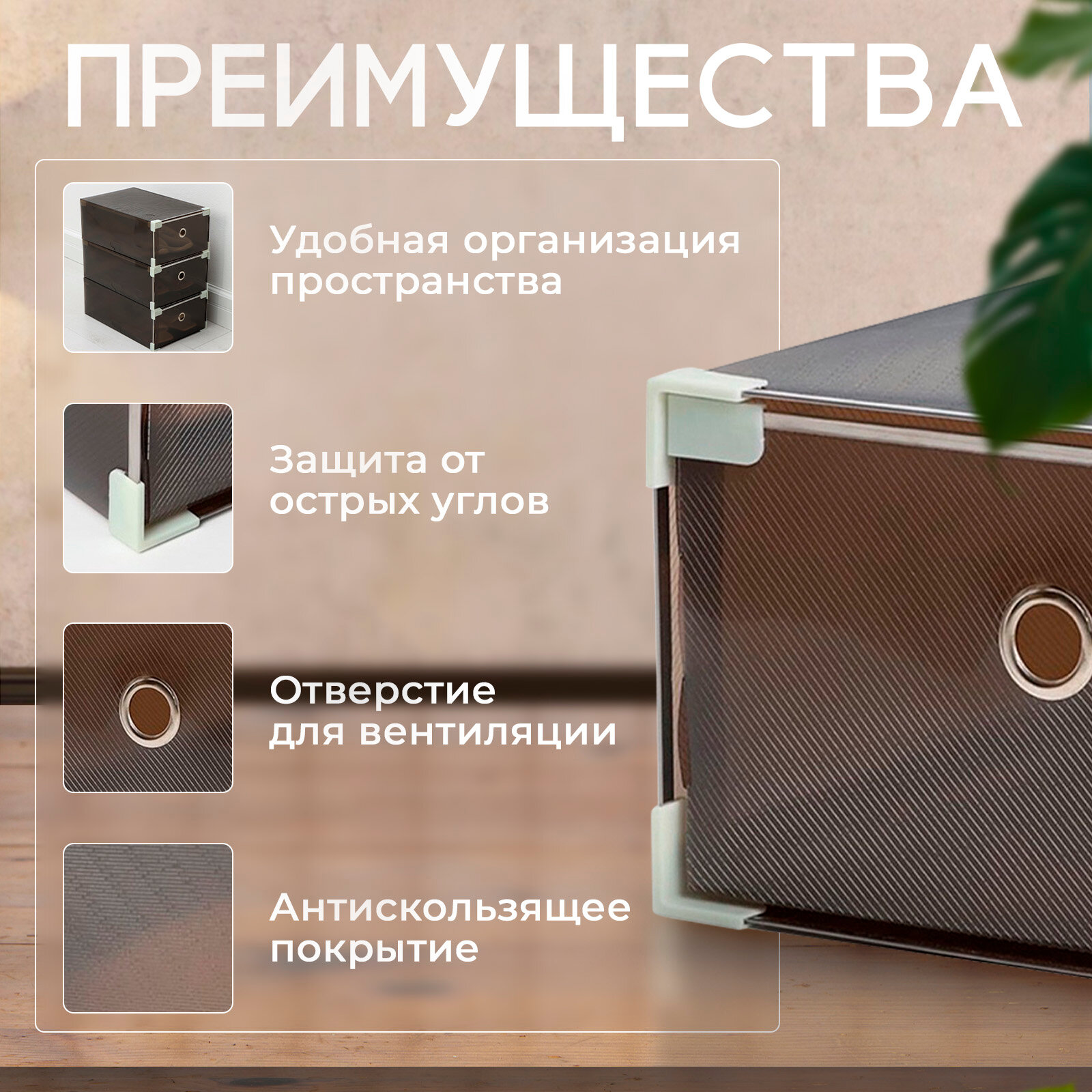 Коробка для хранения обуви, вещей SKYPHOS "Large size" с выдвижным ящиком интересное: