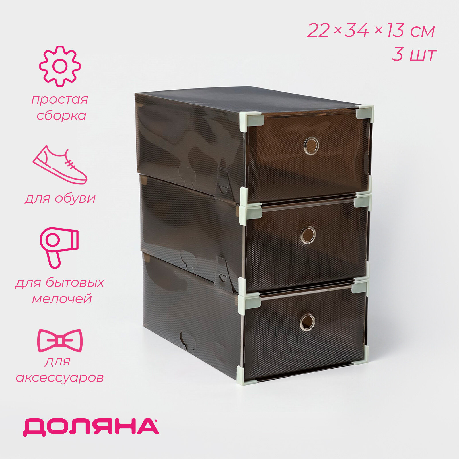 Коробка для хранения обуви, вещей SKYPHOS "Large size" с выдвижными ящиками, 3 шт интересное: