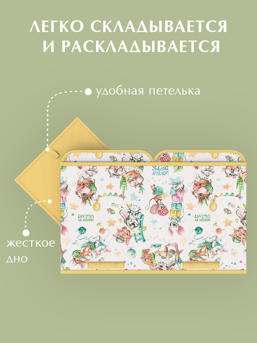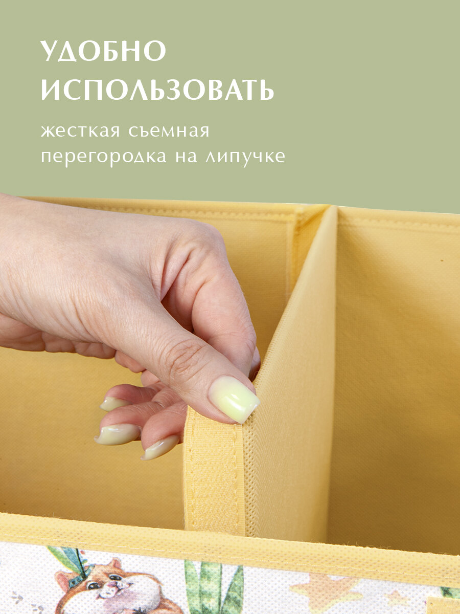 Короб стеллажный 2-х секционный с крышкой, высокий, 50*25*30 см, жёлт, ЛЮБИМЧИКИ интересное: