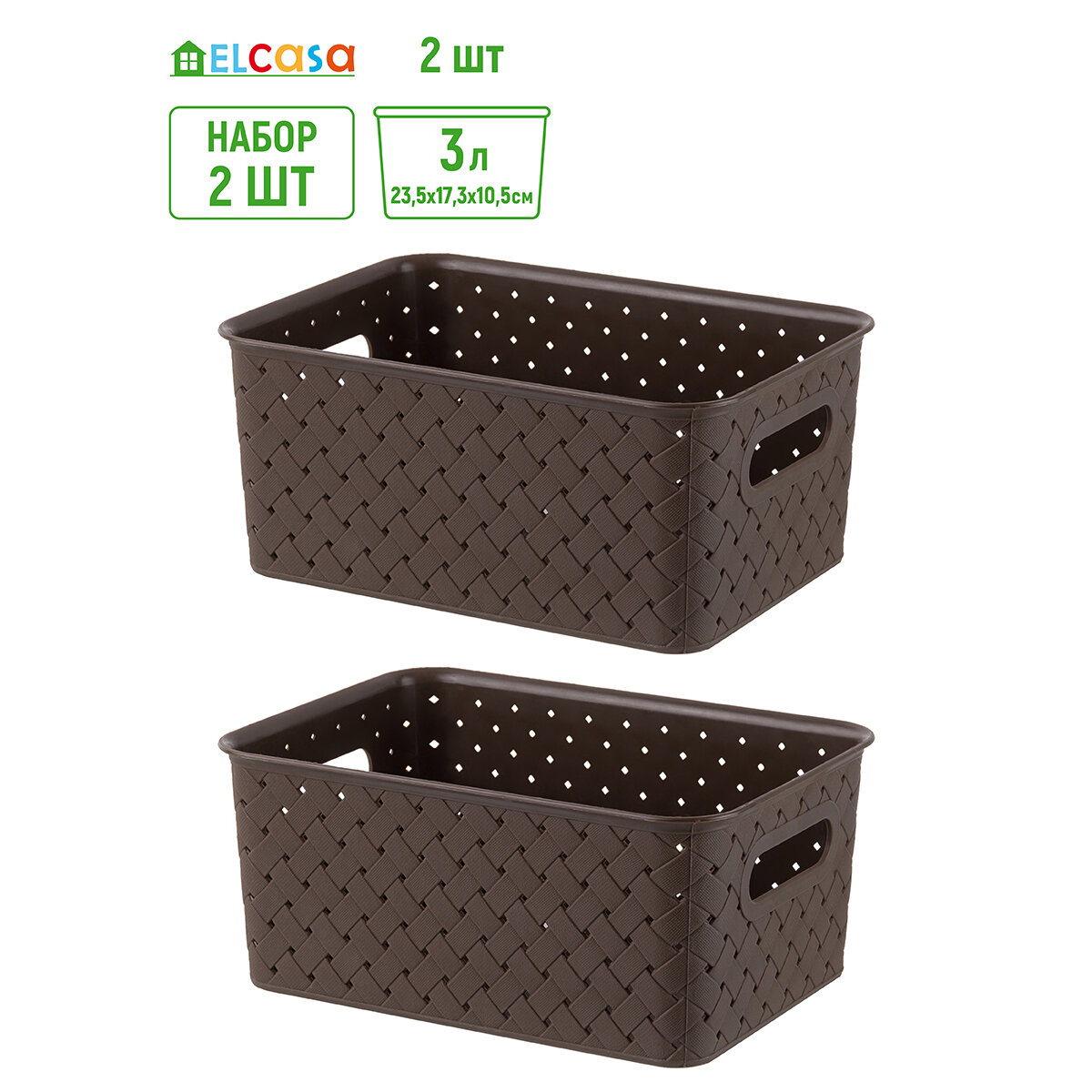 Купить Корзинка, коробка для хранения, 2 шт Береста 3 л EL Casa, цвет темно-коричневый, набор