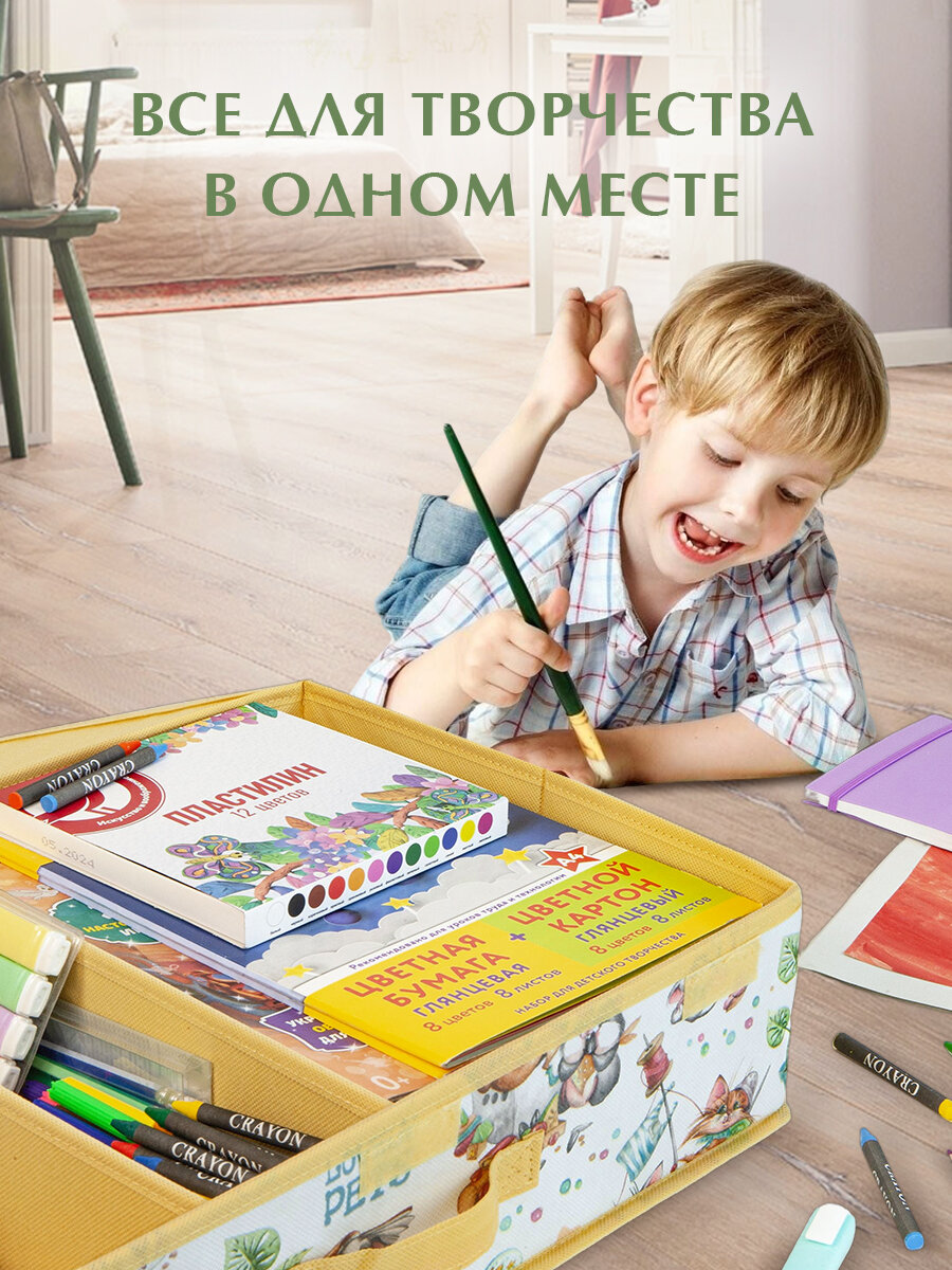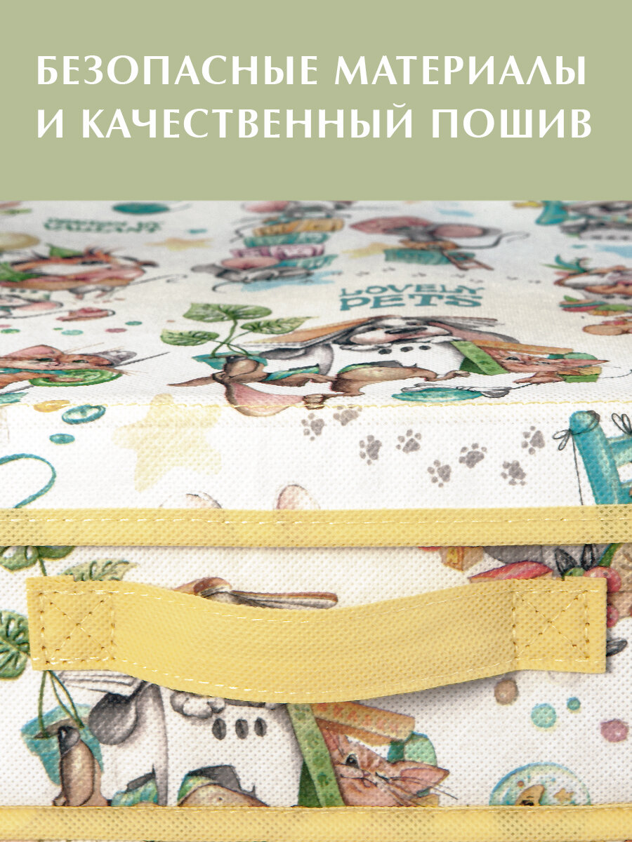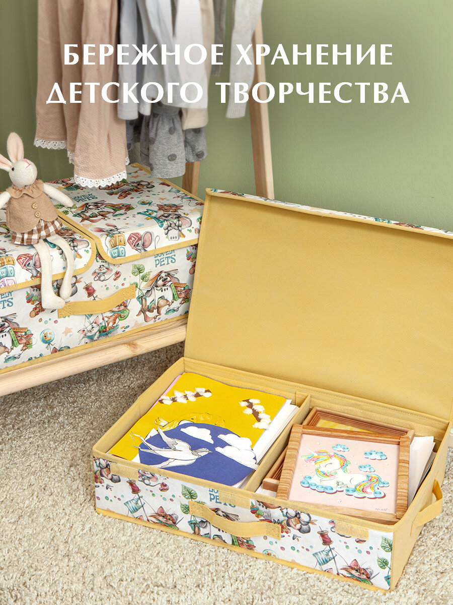 Купить Короб стеллажный с крышкой и 2-мя перегородками, плоск, 50*32*12 см, жёлт, ЛЮБИМЧИКИ