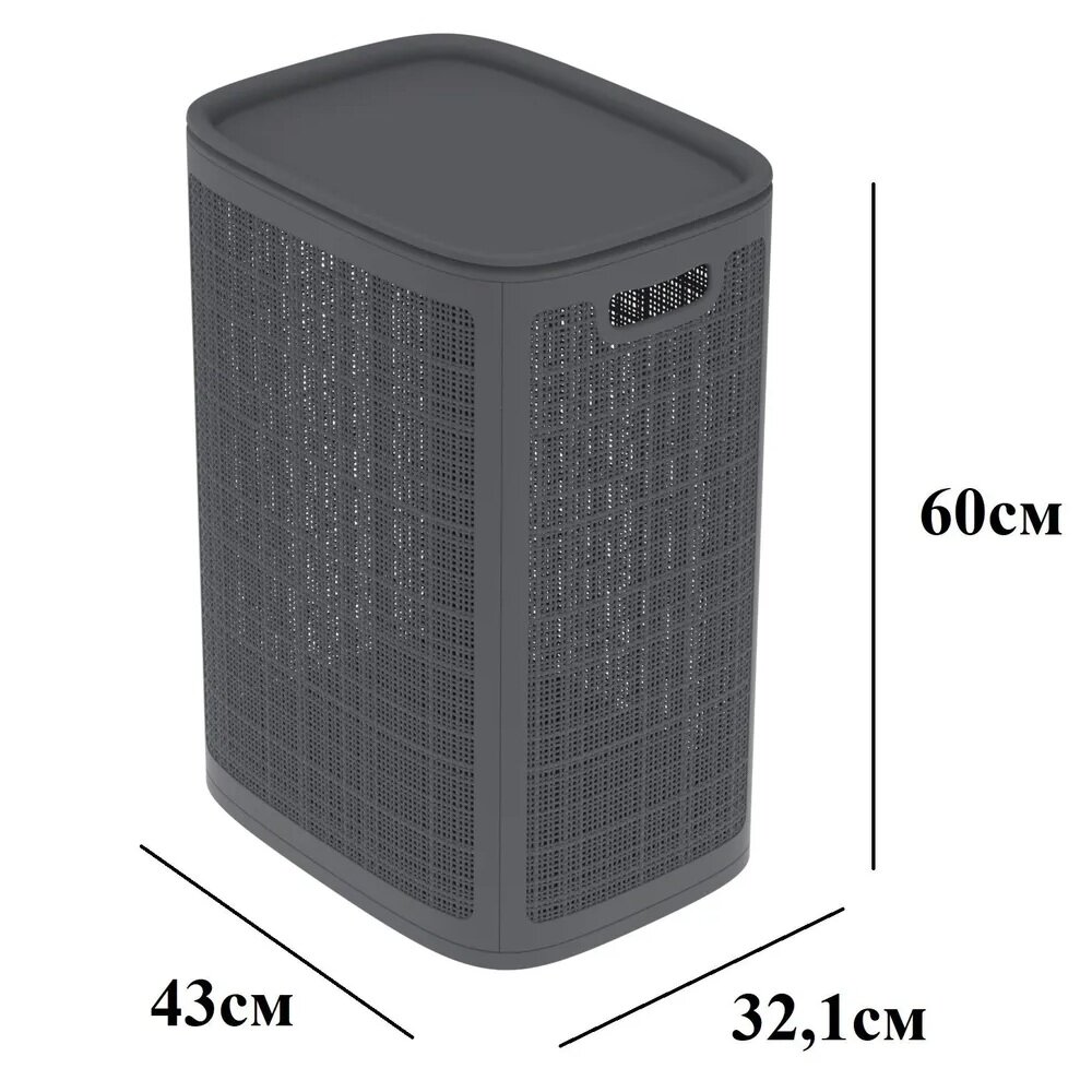 Плетёная корзина для белья сборная «Лён» 75 л (43х32.1х60 см) графит интересное: