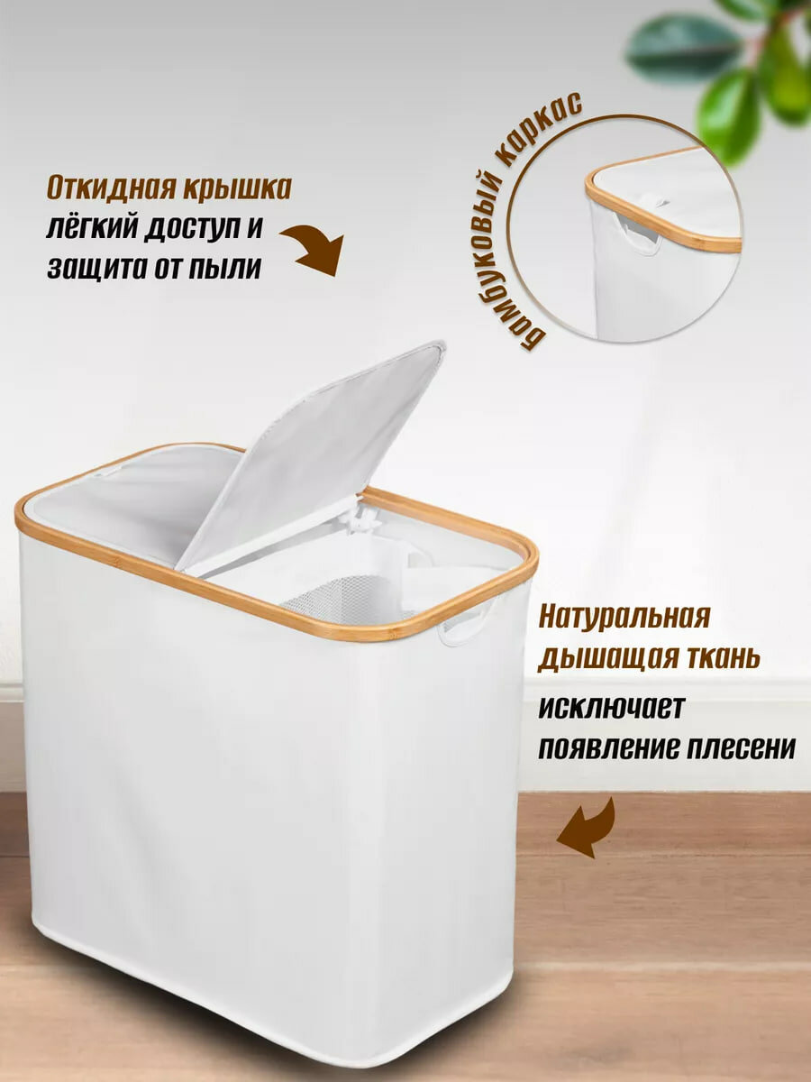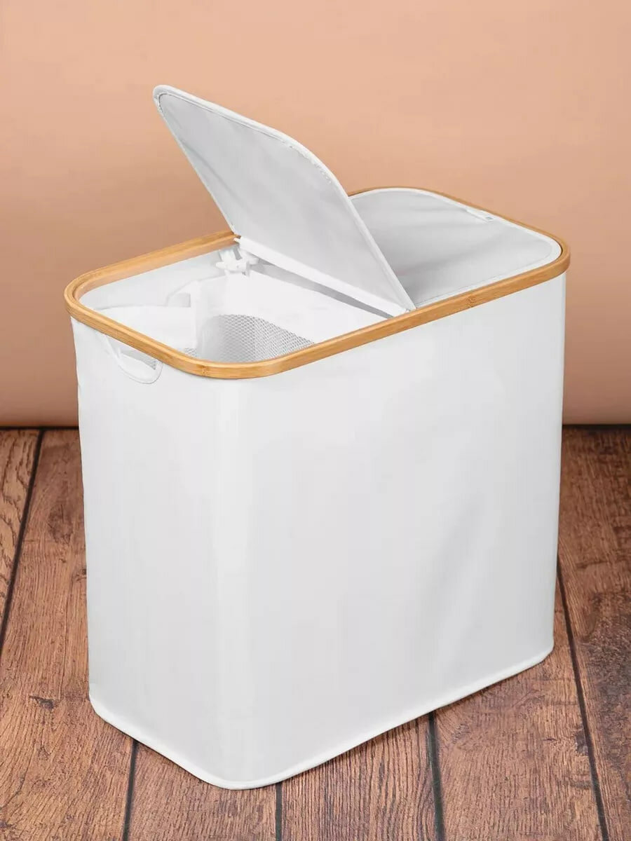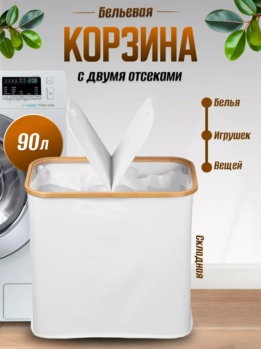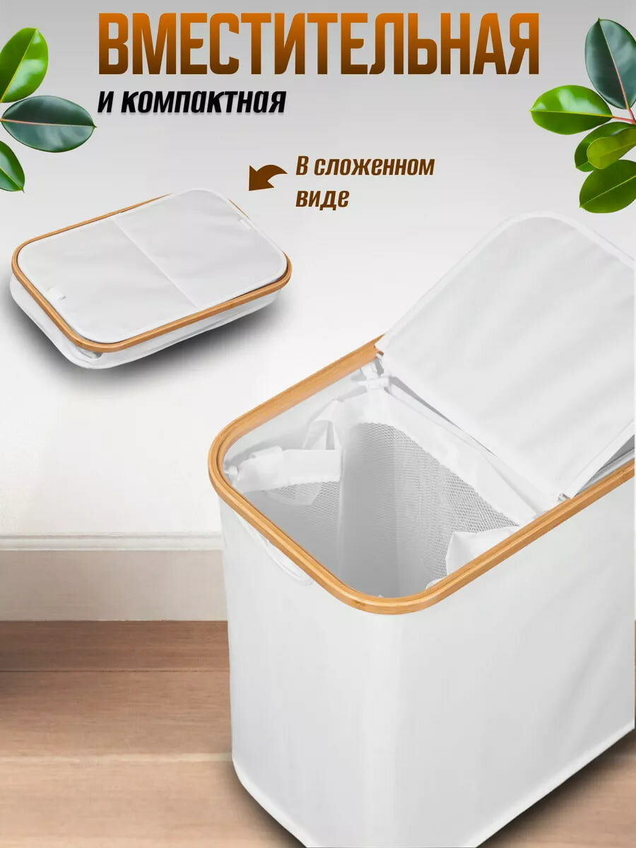 Корзина для белья в ванную, складная узкая тканевая с разделением секционная интересное: