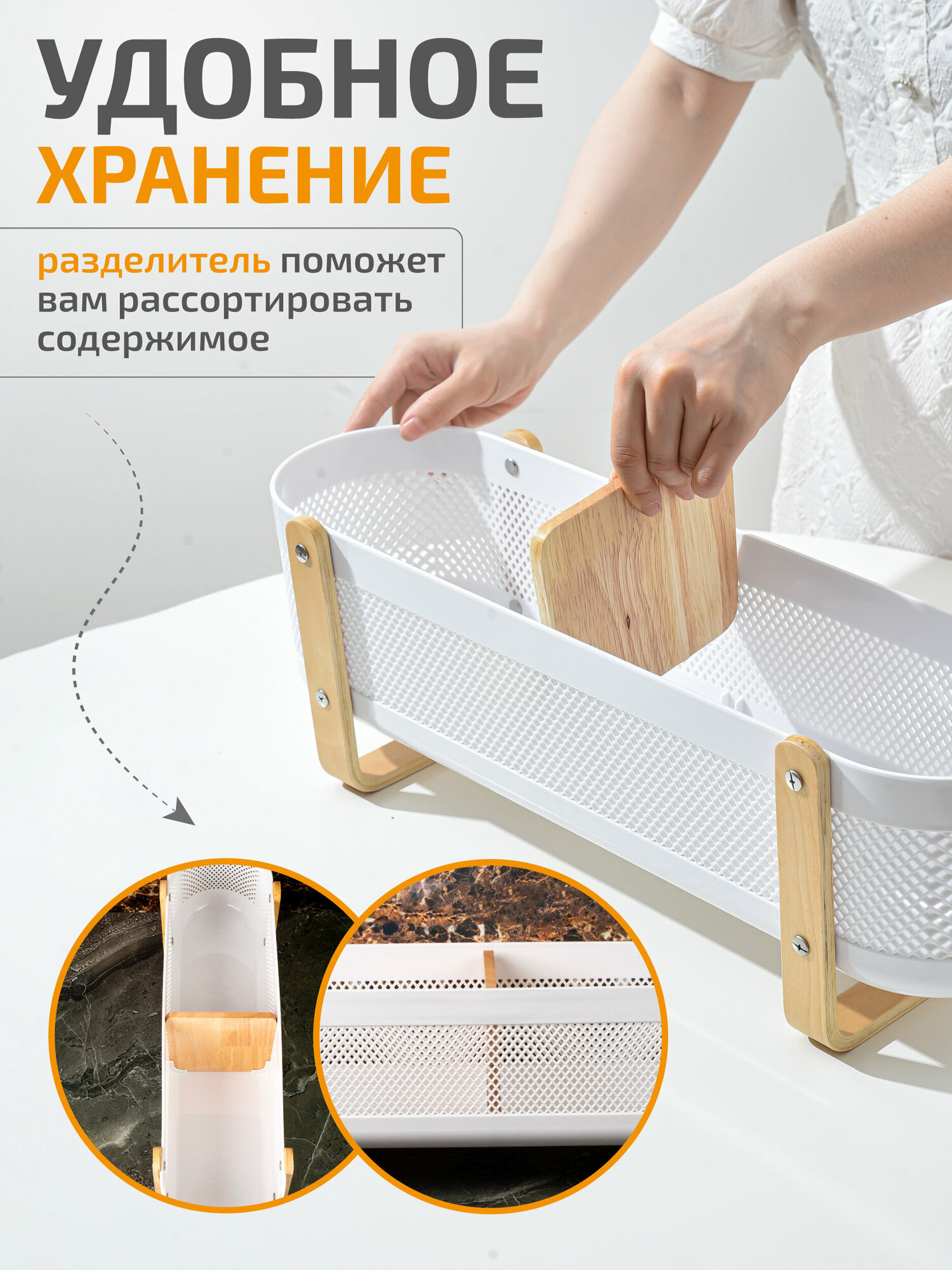 Органайзер корзина для хранения мелочей, пластиковая, с ручками интересное: