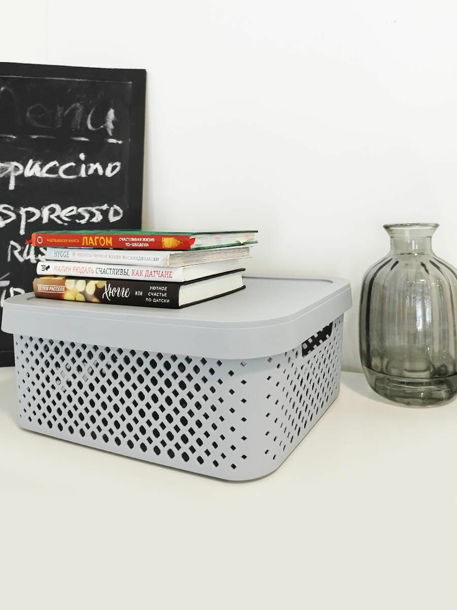 Корзинка для хранения с крышкой Plast Team Stockholm, 10 л серый шторм интересное: