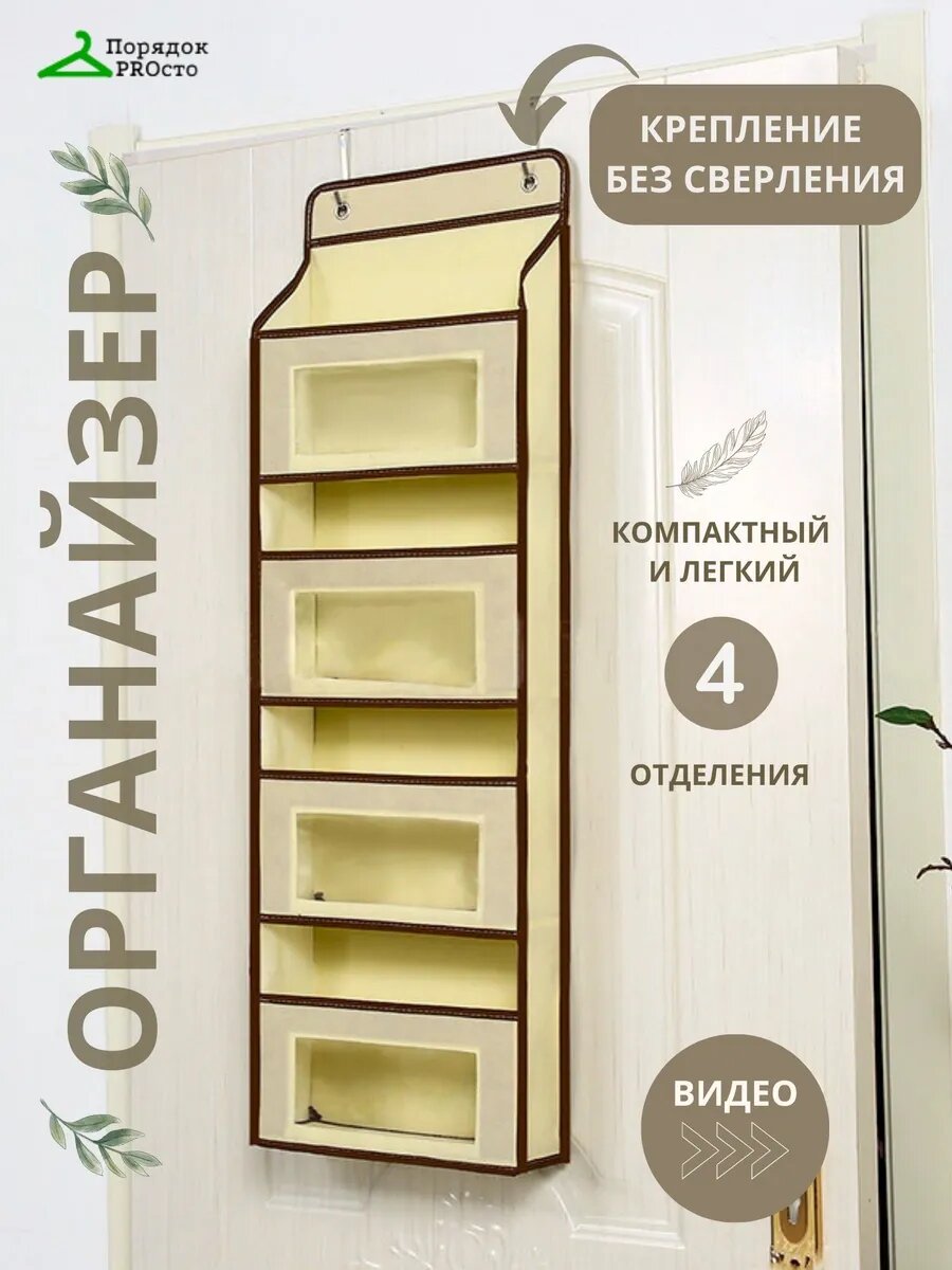 СохранитьОрганайзер Порядок PROсто, подвесной, для мелочей, с карманами, прямоугольный, бежевый/коричневый интересное: