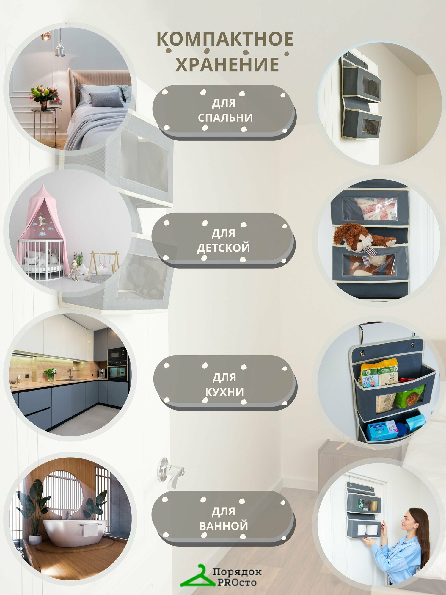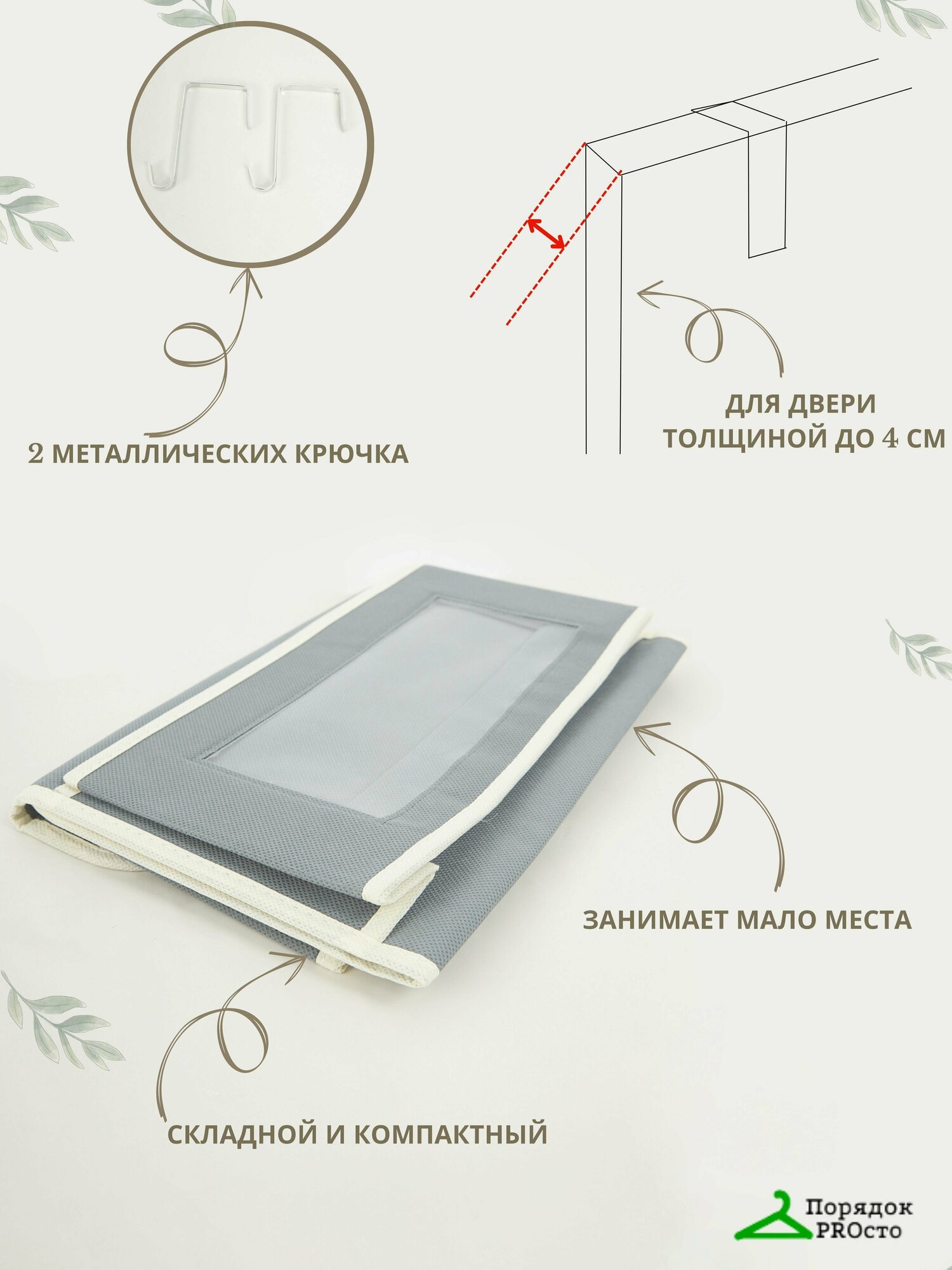 Органайзер Порядок PROсто, подвесной, 4 отделения, серый/бежевый