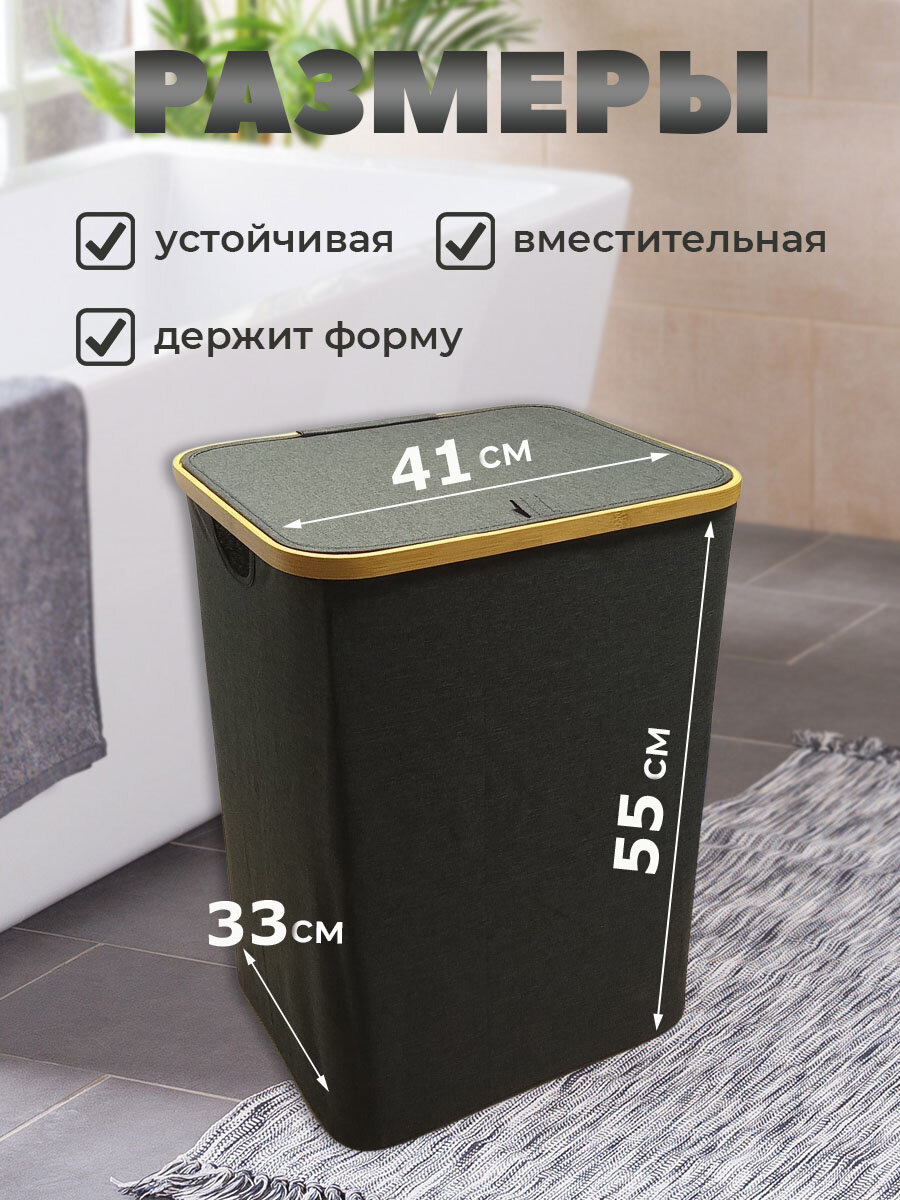 Корзина для белья ткань/ бамбук, бак для белья с крышкой, в ванную, в детскую 54л