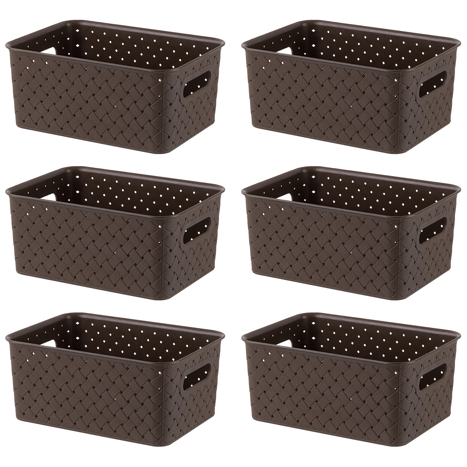 Корзинка, коробка для хранения, с крышкой 6 шт Береста 3 л EL Casa, цвет темно-коричневый, набор интересное: