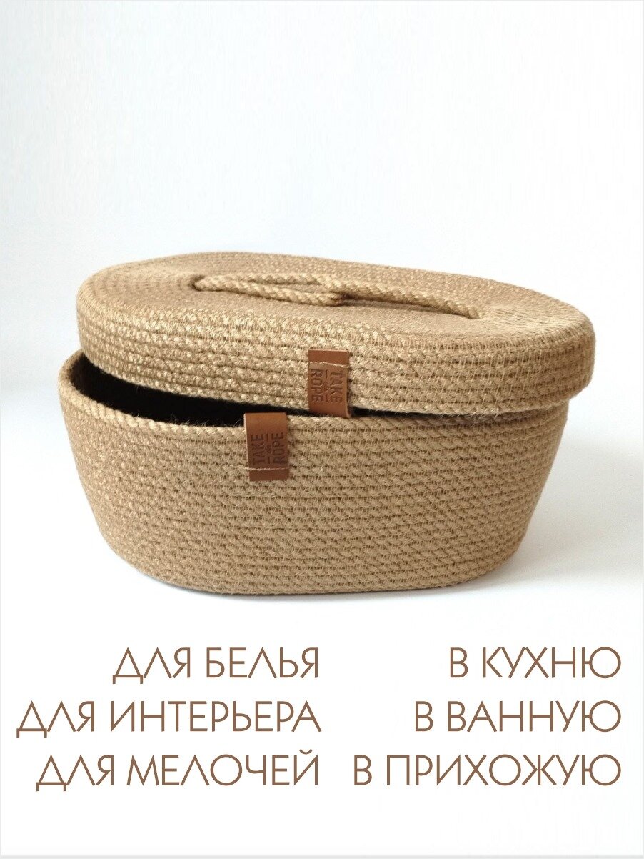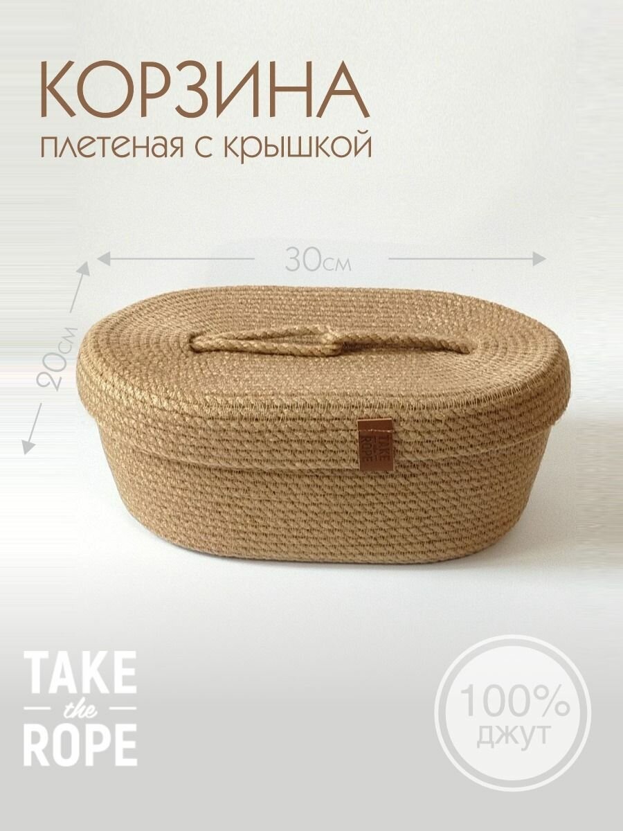 Корзина плетеная для хранения TAKE the ROPE с крышкой, из джута, D-30 см Ш-20 см В-13 cм интересное: