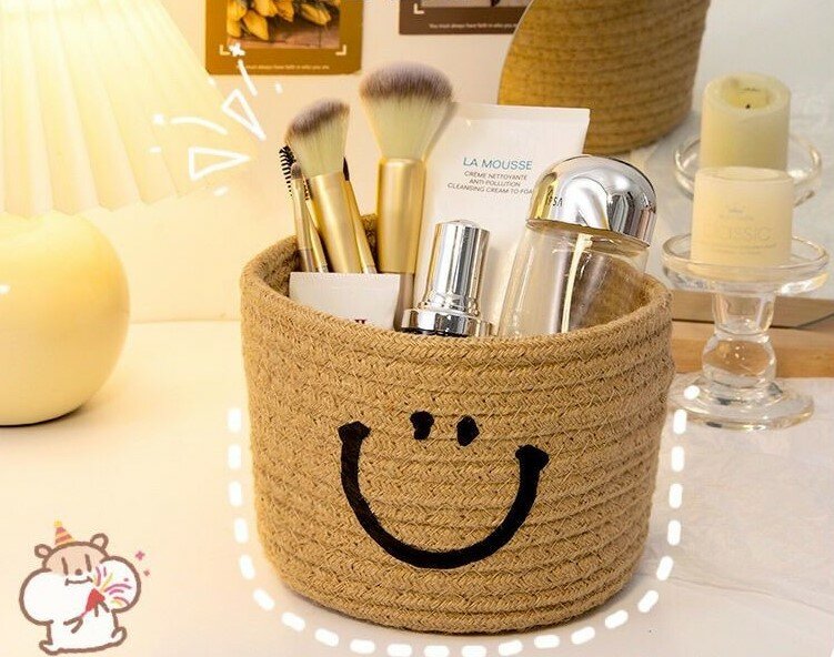 Корзина для хранения плетеная, вязаная размер 15*12см, бежевая интересное: