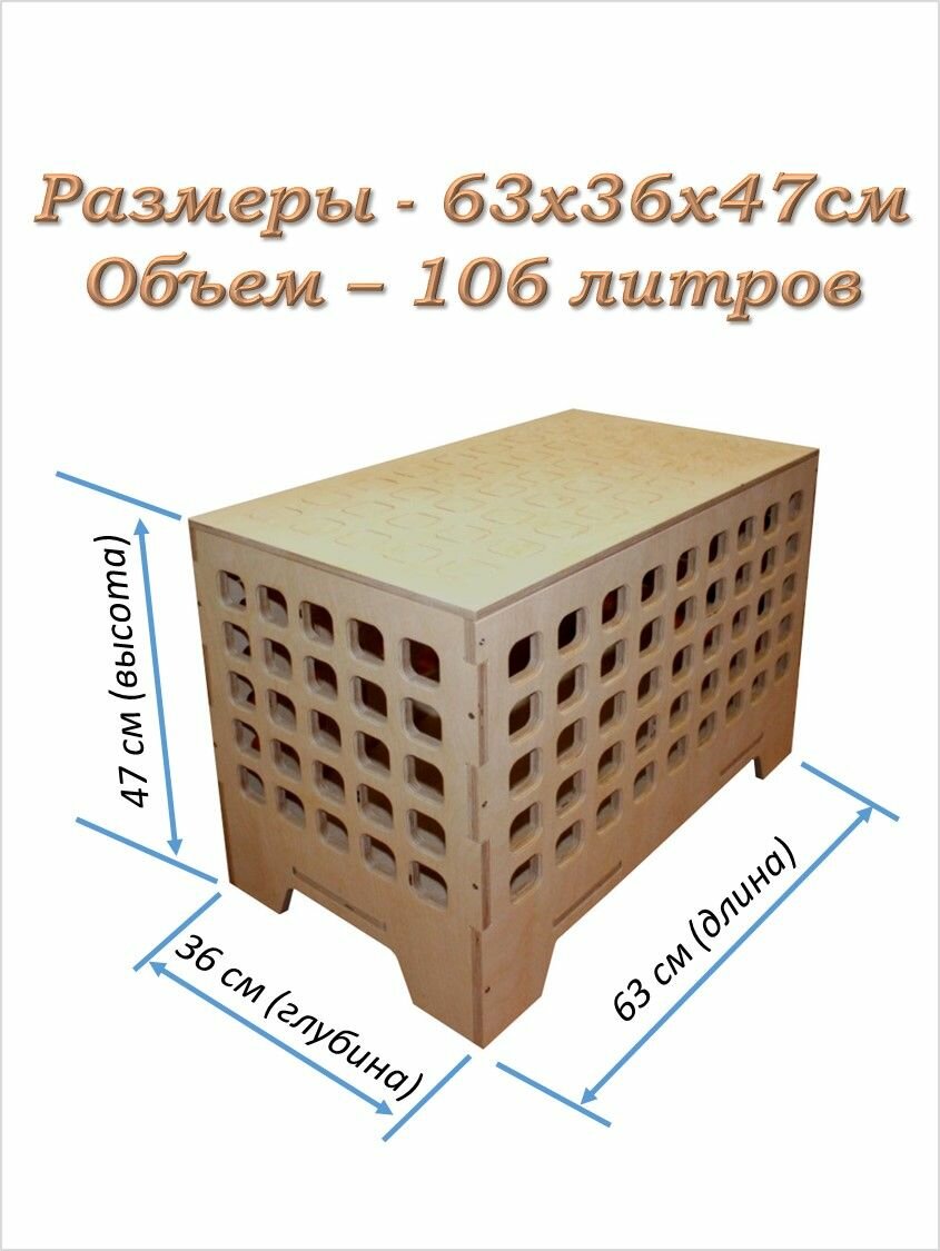 Деревянный сундук - скамейка (с отверстиями, не крашенный). Ящик 63х36х47. интересное: