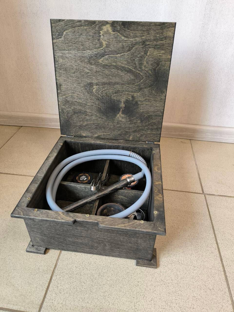 Купить Кальянный столик комплект: сундук для табака, аксессуаров, угля и принадлежностей черный матовый квадратный