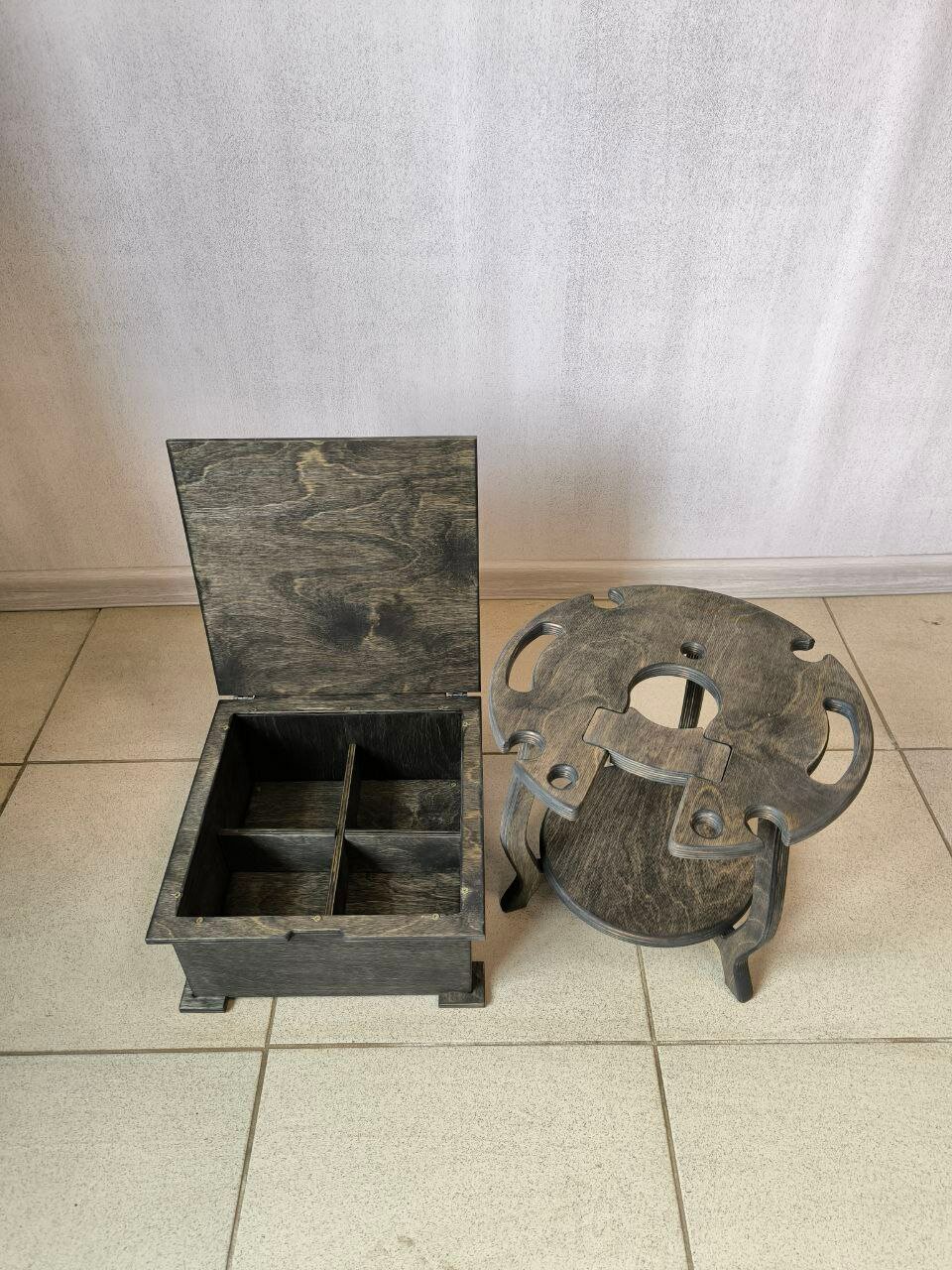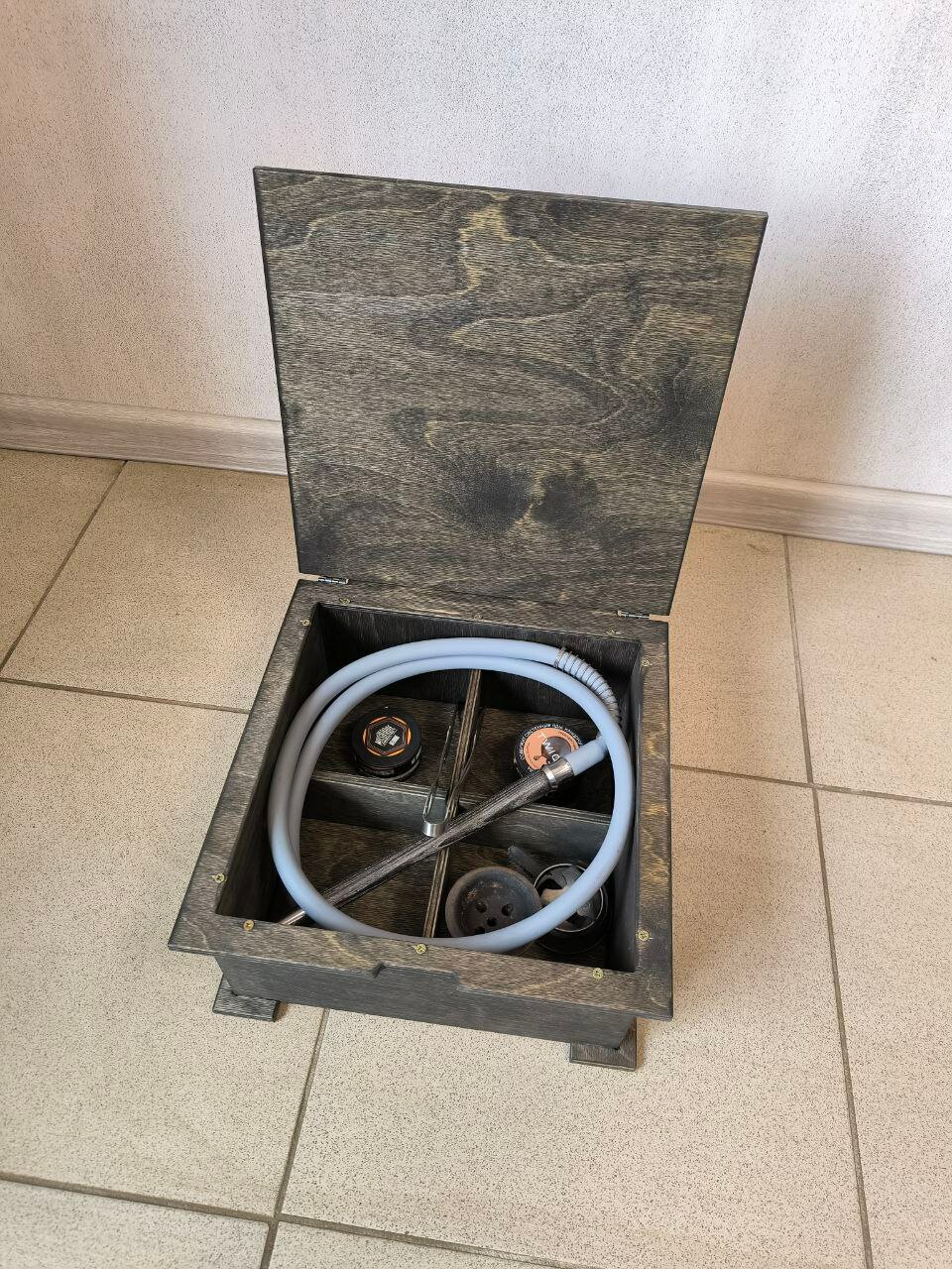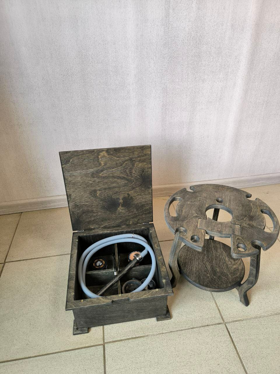 Кальянный столик комплект: сундук для табака, аксессуаров, угля и принадлежностей черный матовый квадратный интересное: