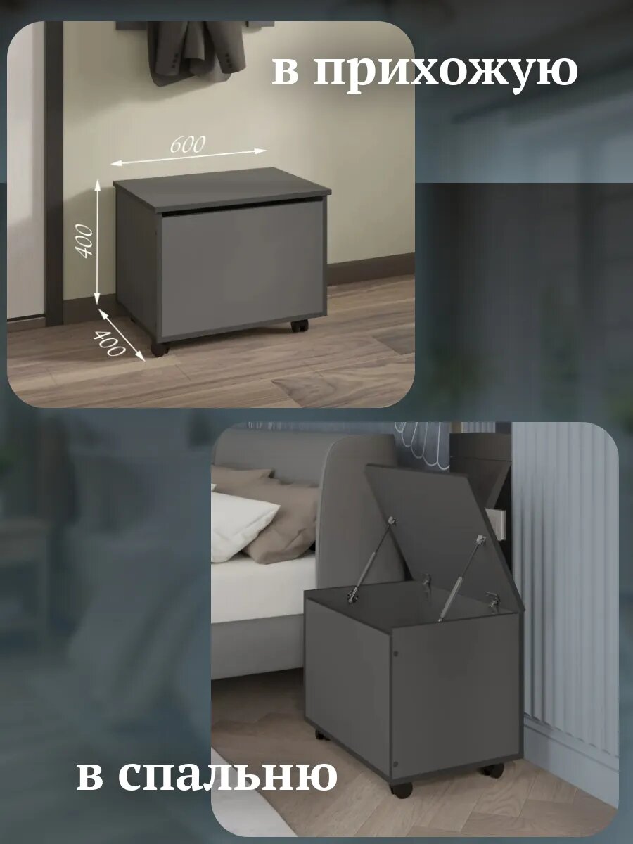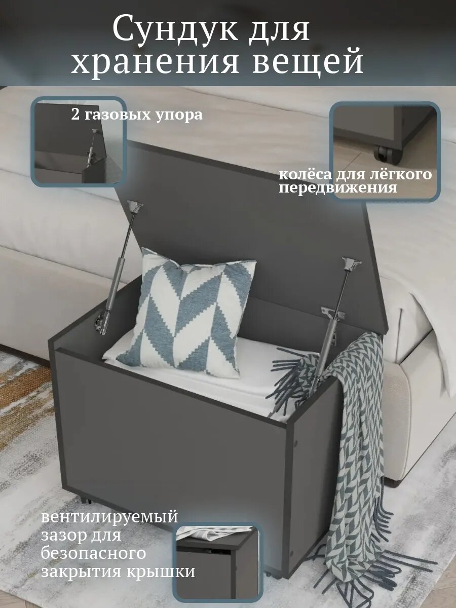 Сундук-тумба, с колёсиками, откидной крышкой, графитовый, 45x60x40 см интересное: