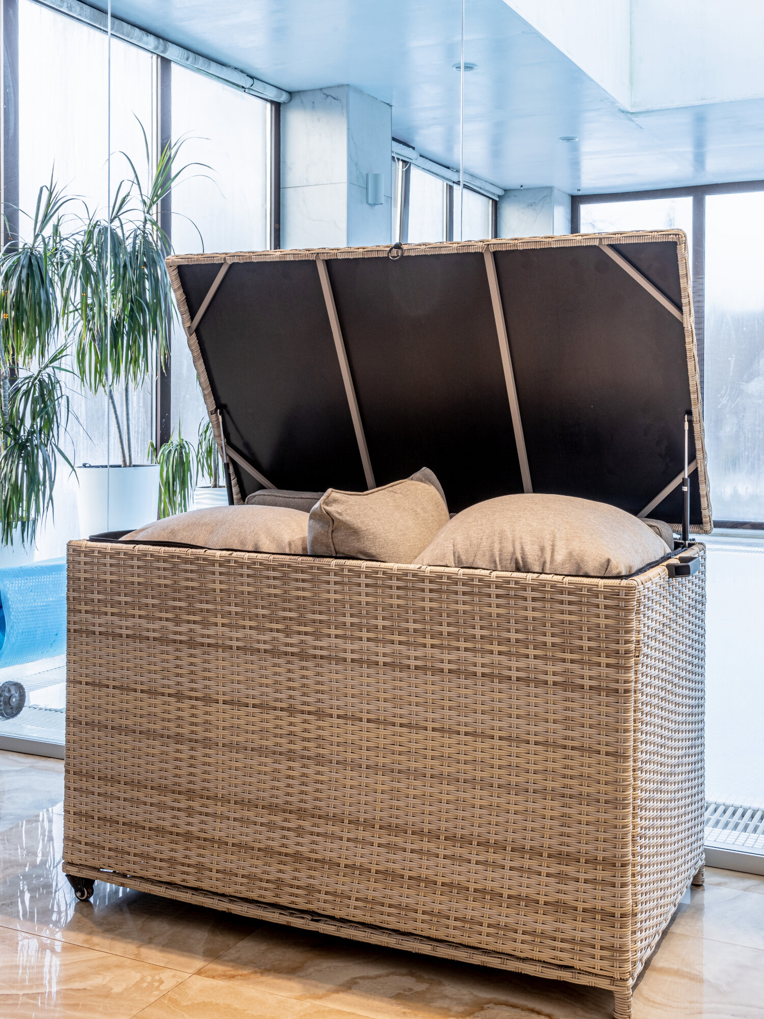 Сундук из искусственного ротанга KARL, бежевый, с колесиками интересное:
