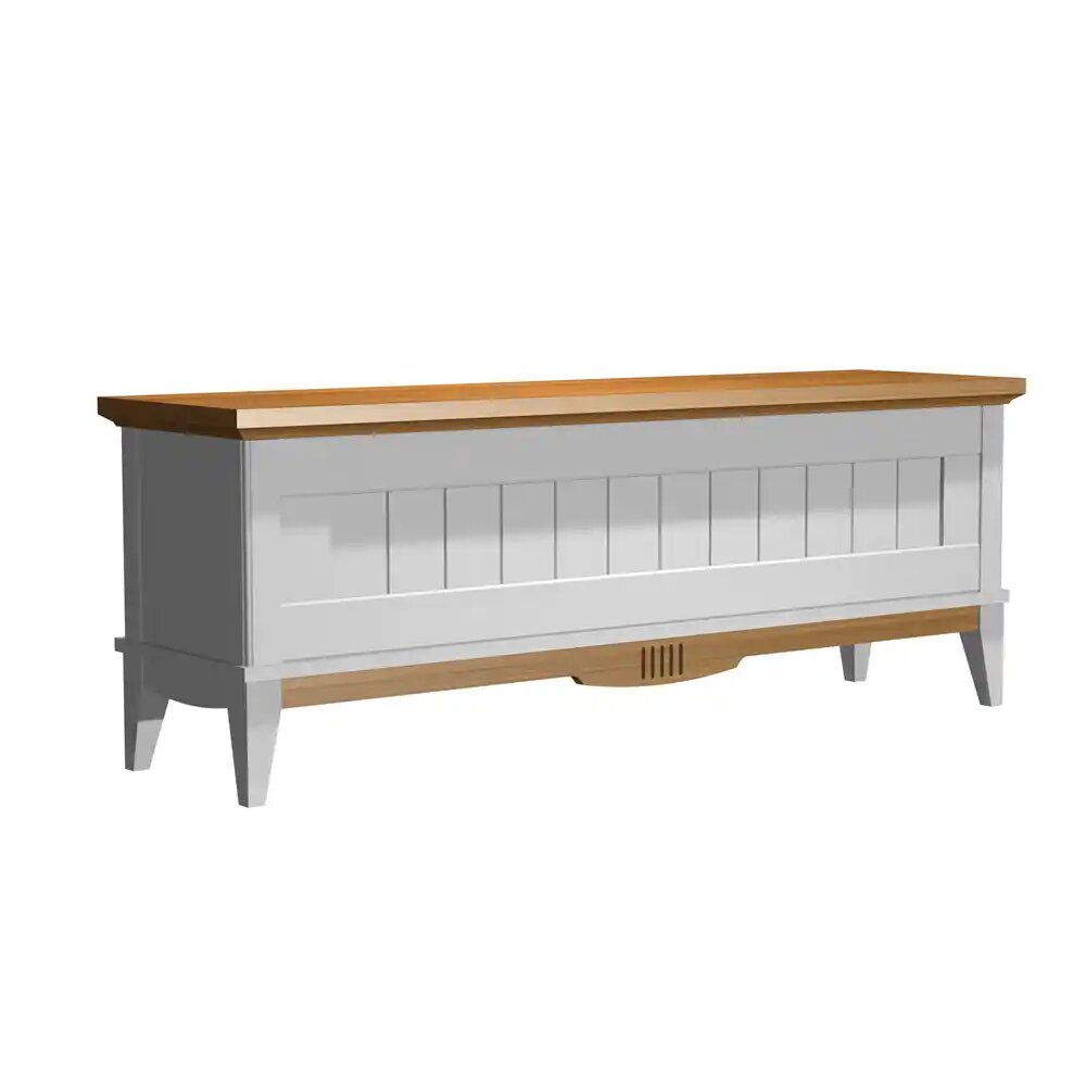 Купить Тумба-сундук с сиденьем, массив сосны Пенни,136х35х50 цвет - белый воск/антик