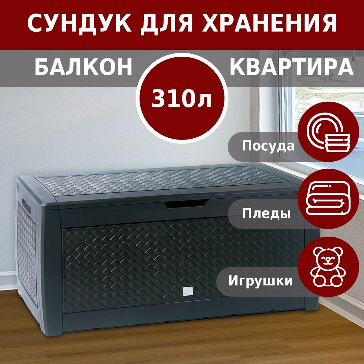 Сундук садовый для хранения вещей Prosperplast Boxe Matuba 310 л антрацит интересное: