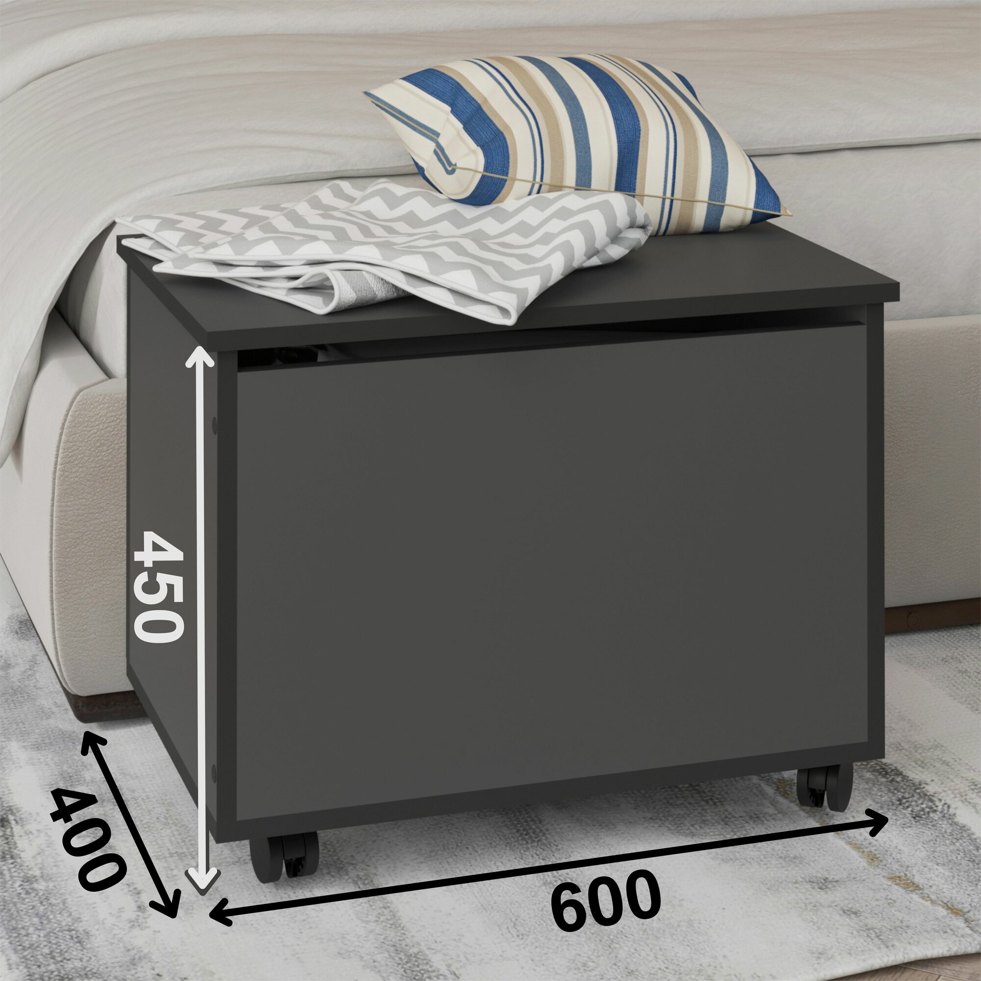 Прикроватная тумба "Сундук", цвет графит, материал ДСП, 60x45x40 см, с колесами интересное: