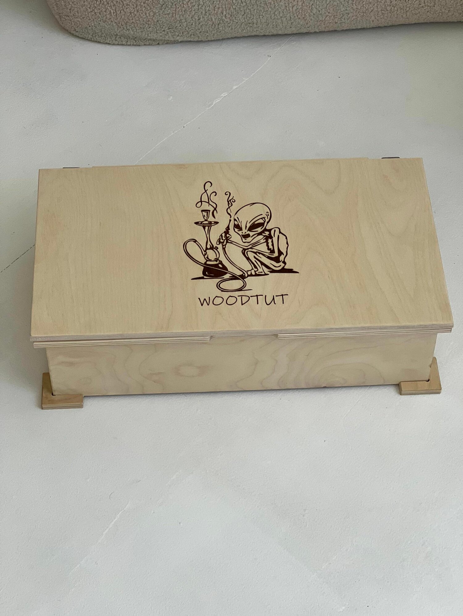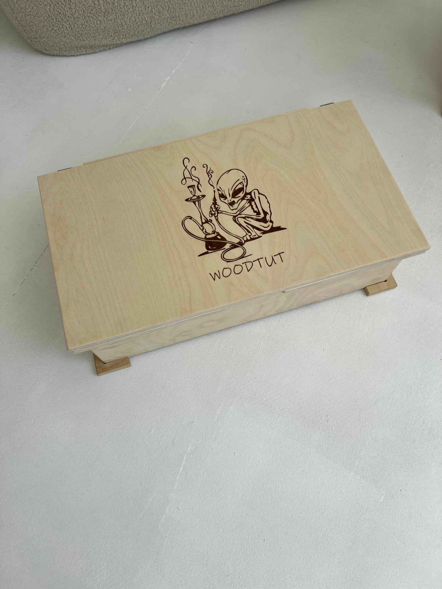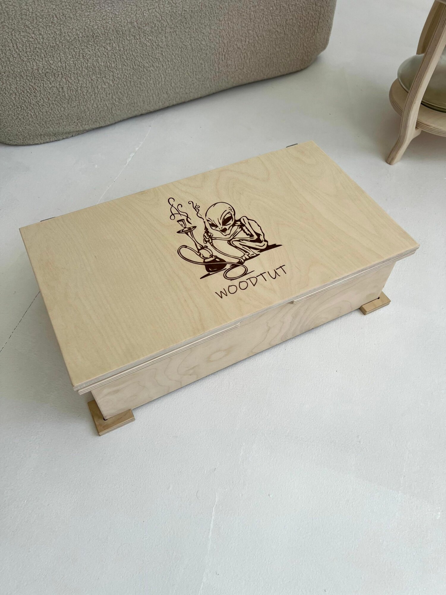 Кальянный набор: сундук для табака, аксессуаров, угля и принадлежностей с гравировкой "НЛО Пришелец" интересное: