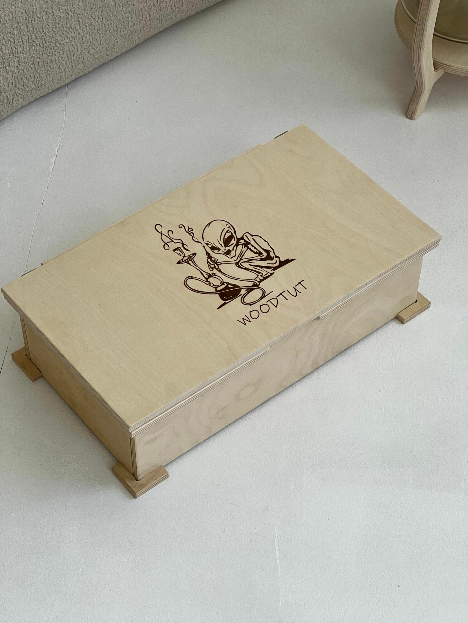 Купить Кальянный набор: сундук для табака, аксессуаров, угля и принадлежностей с гравировкой "НЛО Пришелец"