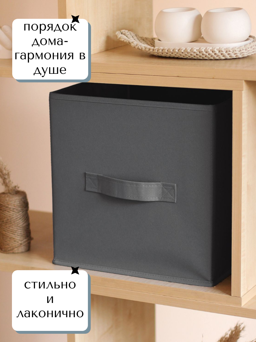 Коробка для хранения, короб для хранения стеллажный 30*30*30 см темно-серый. Набор из 2 штук интересное: