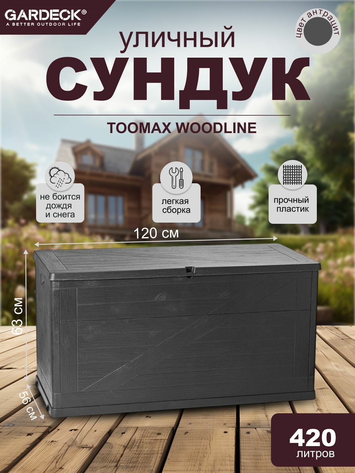 СохранитьСундук Toomax WoodLine, 420 л антрацит интересное: