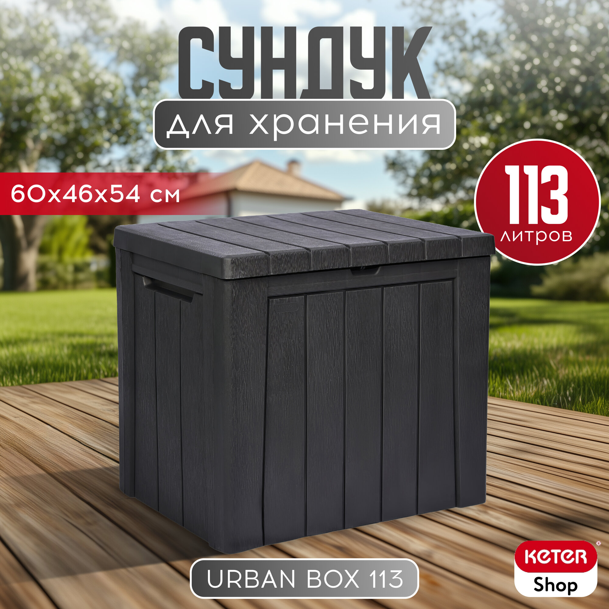 Сундук Keter "Урбан", пластик, графитовый цвет, 113л, высота 53см, глубина 46см интересное: