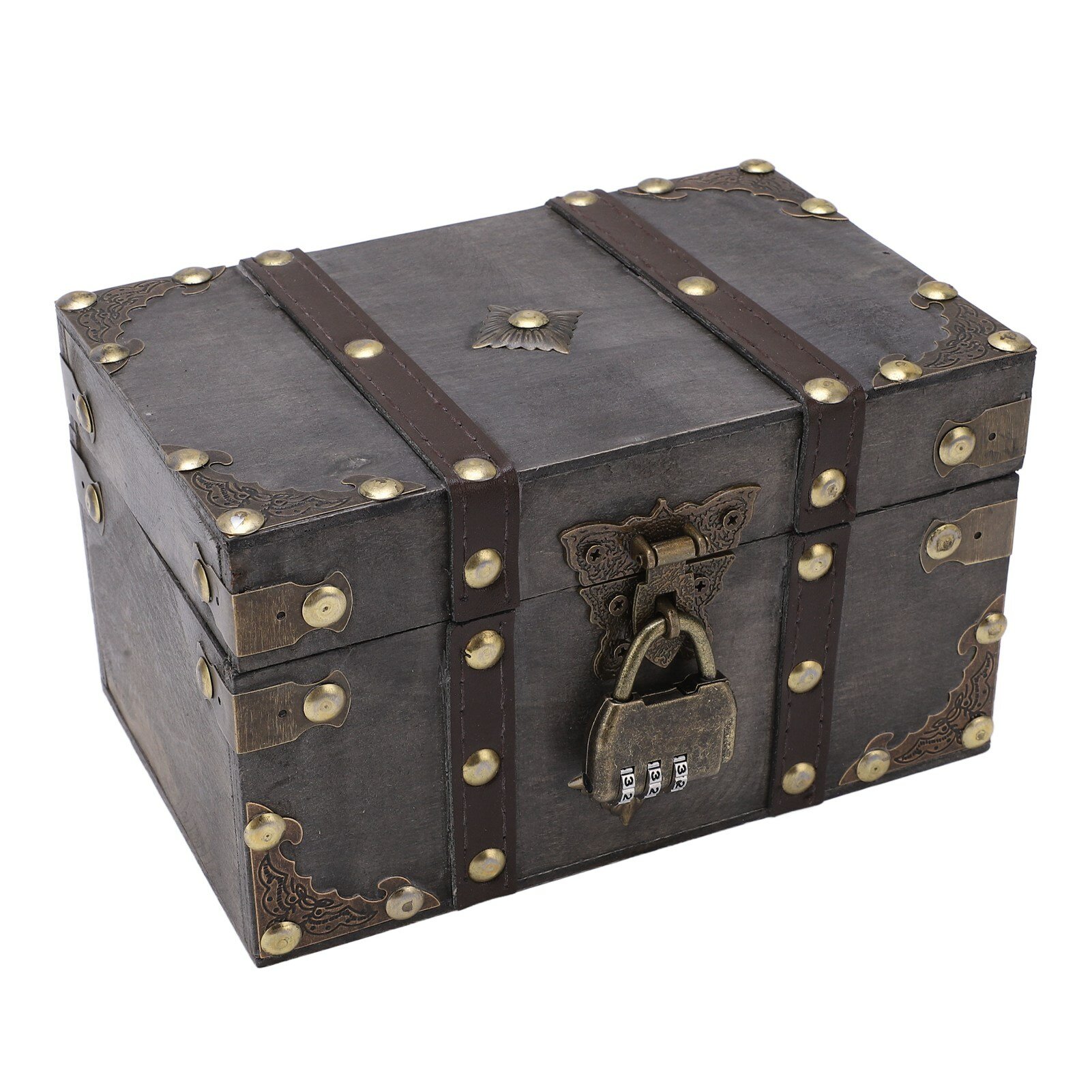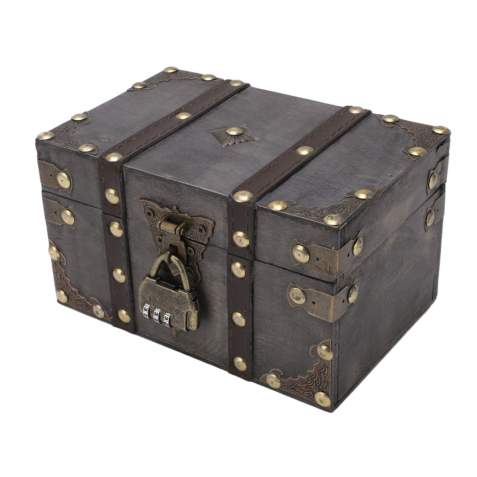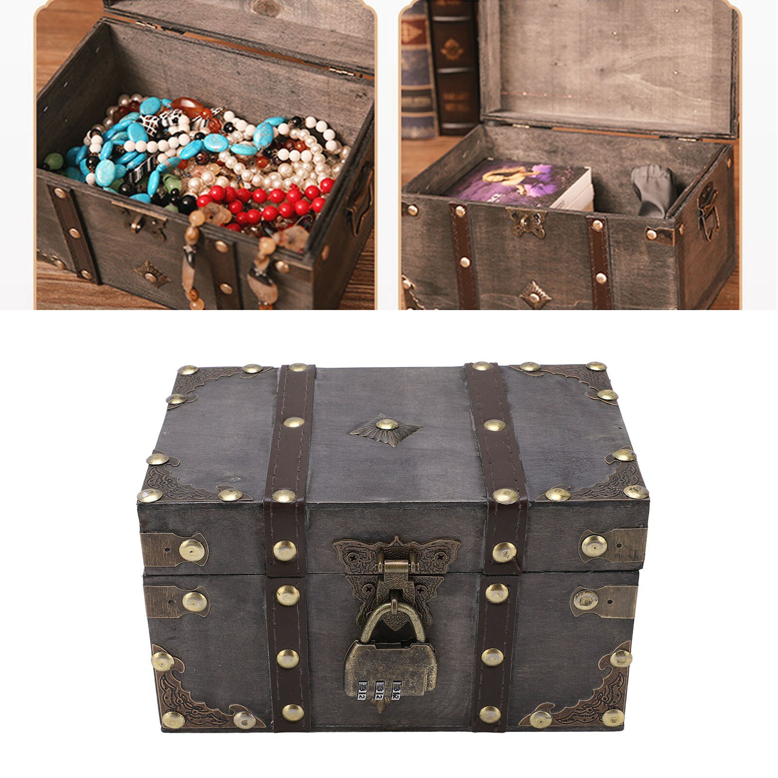 Купить Wooden Treasure Chest Vintage Style Coded Lock Alloy Tipping Durable Wood Wide Application Jewelry Box