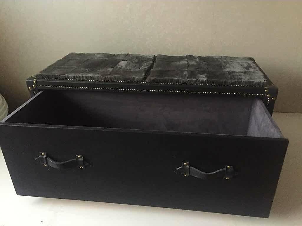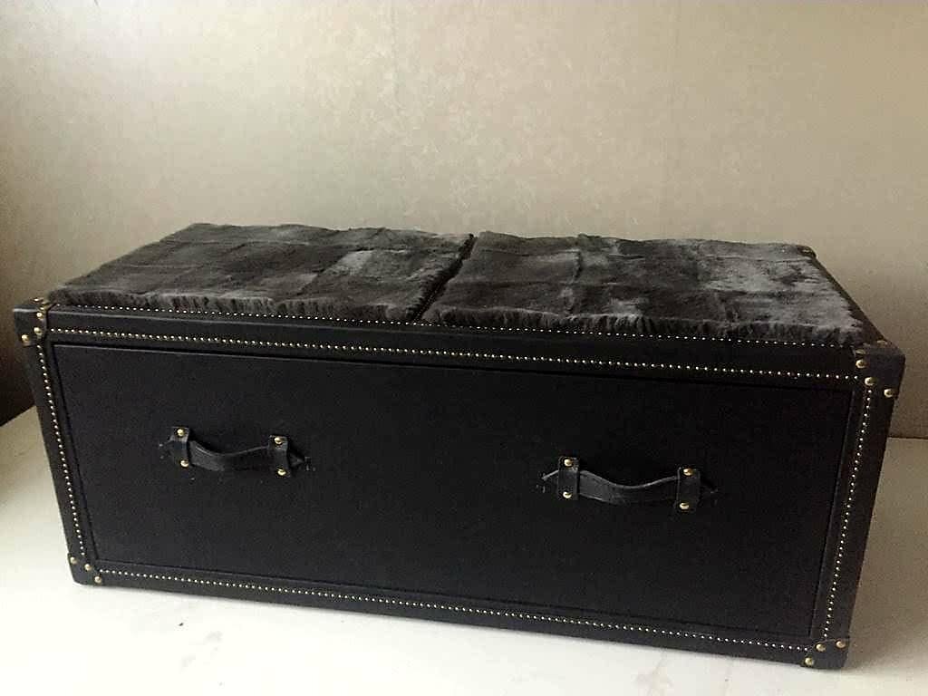 Сундук с выдвижным ящиком и мехом на крышке, 110х60х45 см, SITDOWN, натуральная кожа, черный интересное: