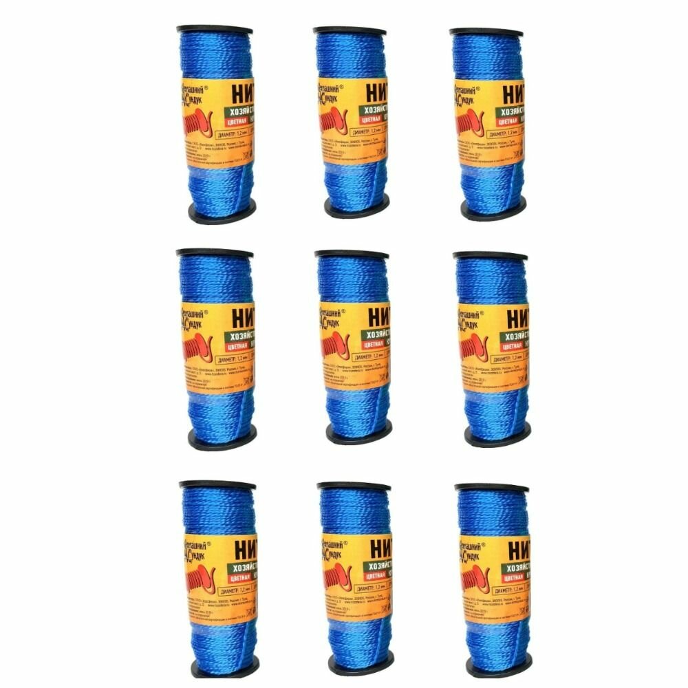 Домашний Сундук Нить хозяйственная крученая цветная диаметр 1,2мм, длина 50м, 9 шт. интересное: