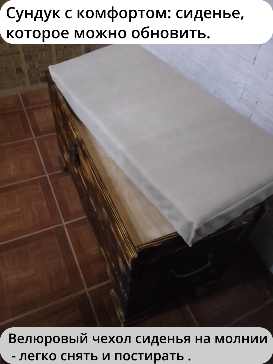 Сундук-комод-банкетка, массив сосны, ручная работа, с потайным ящиком, со съемным сиденьем интересное: