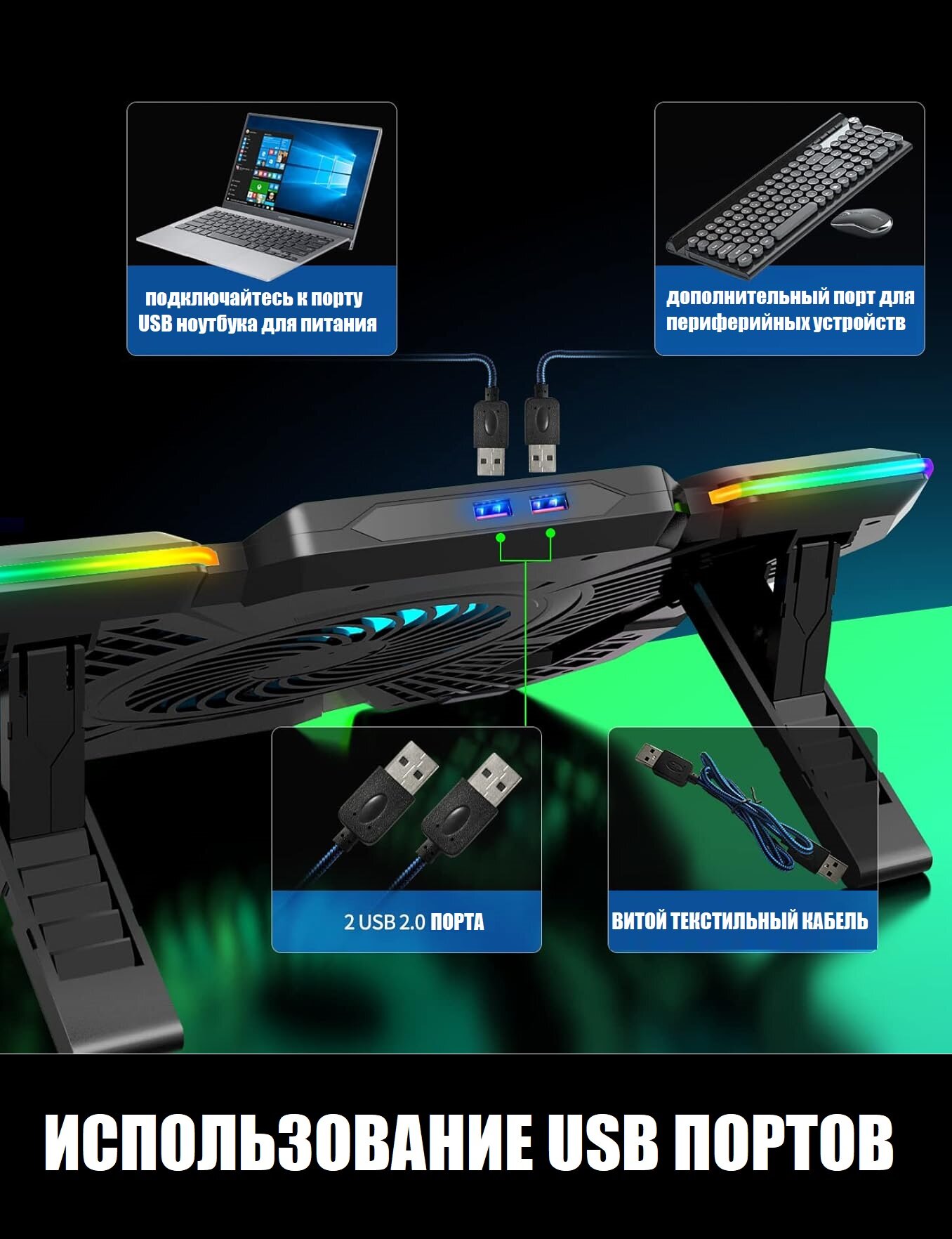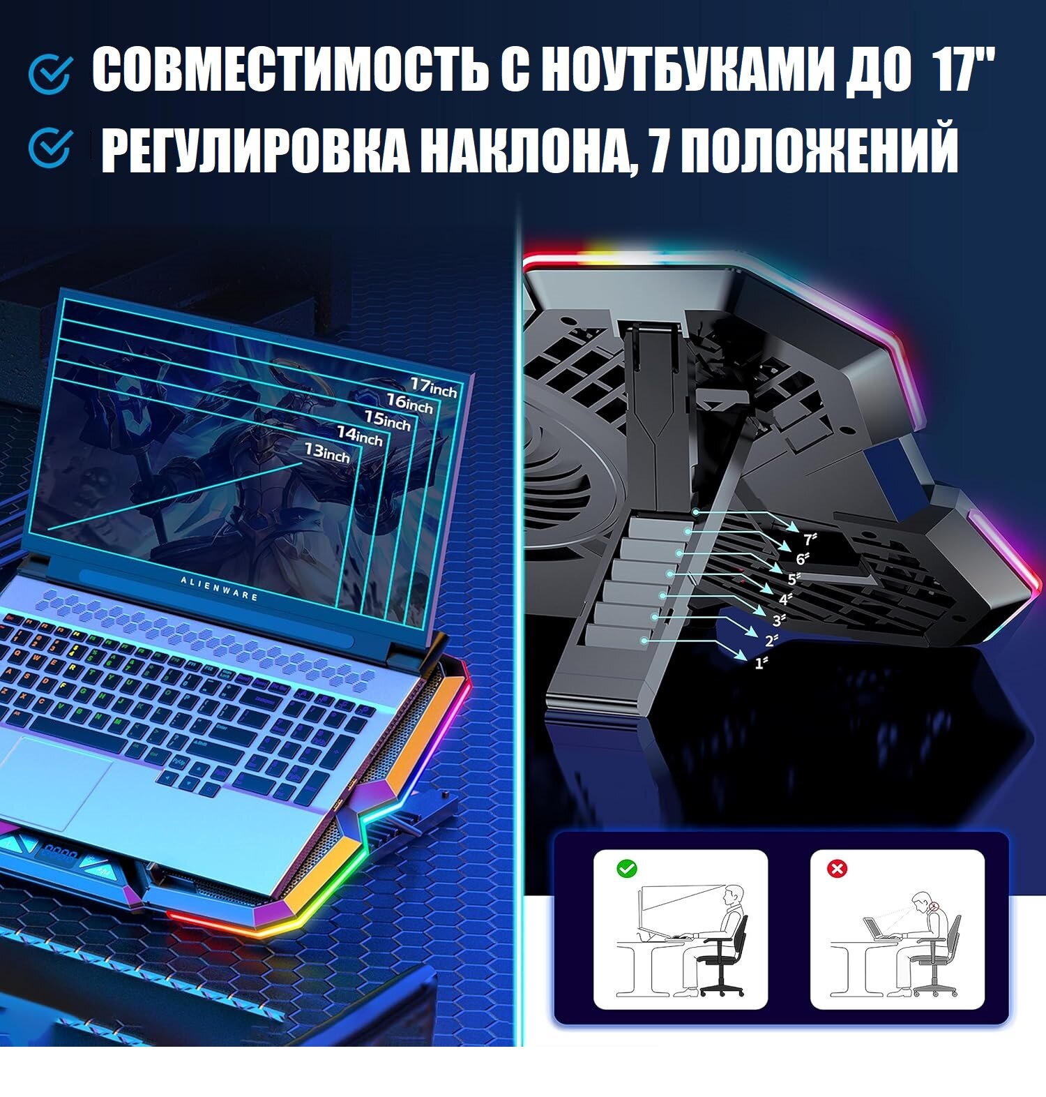 Подставка для ноутбука до 17" с охлаждением 5 вентиляторов RGB интересное: