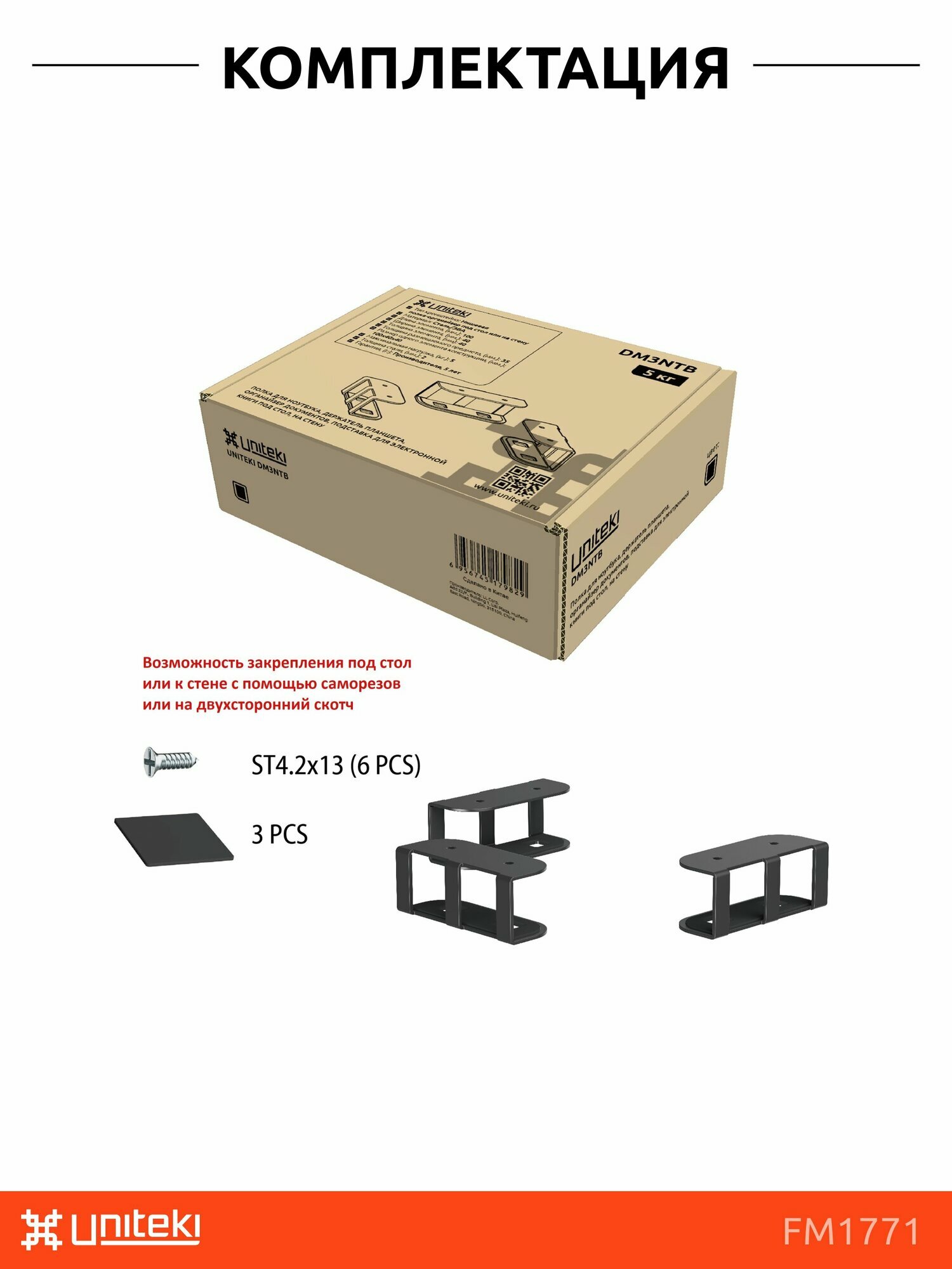 Купить Полка для ноутбука, держатель планшета, органайзер документов, подставка для электронной книги под стол, на стену UNITEKI DM3NTB черный комплект, настенный, нишевой,