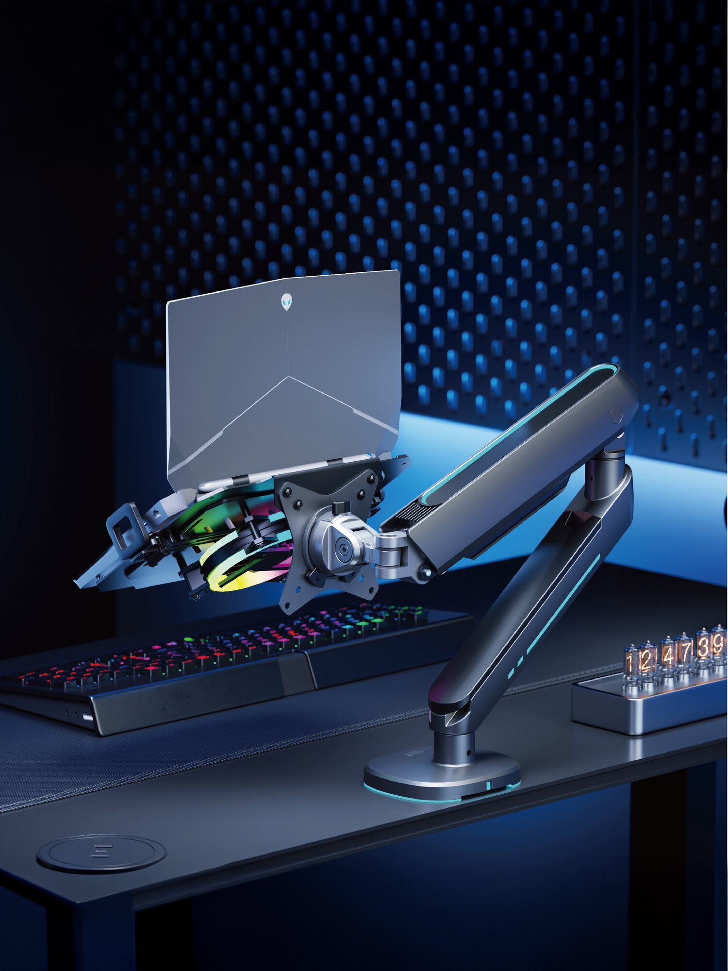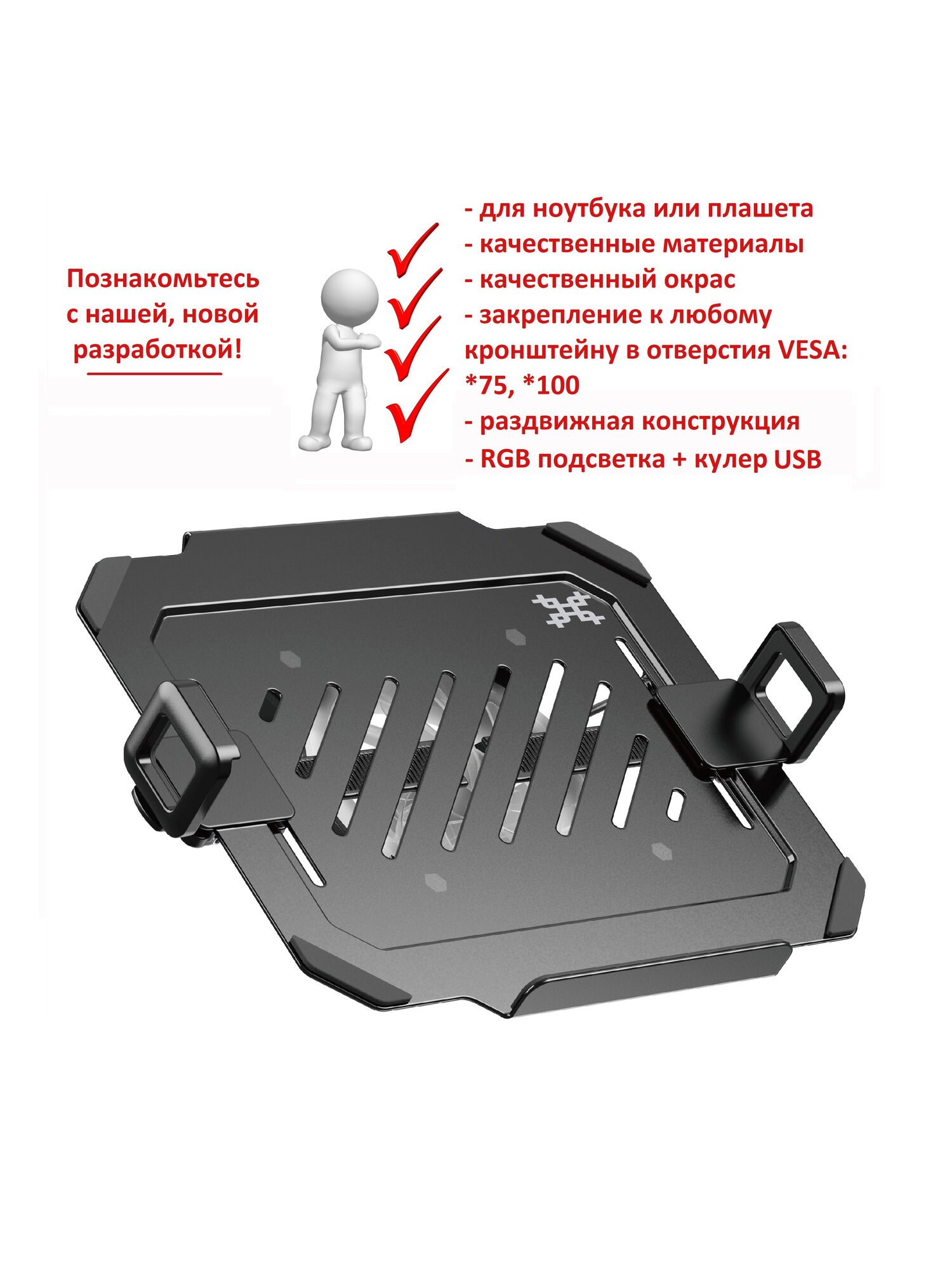 СохранитьПолка подставка для ноутбука, крепление VESA к кронштейну, держатель планшета, на кронштейн, диагональ 12-17 дюймов UNITEKI DMN09USB с охлаждением и подсветкой RGB интересное:
