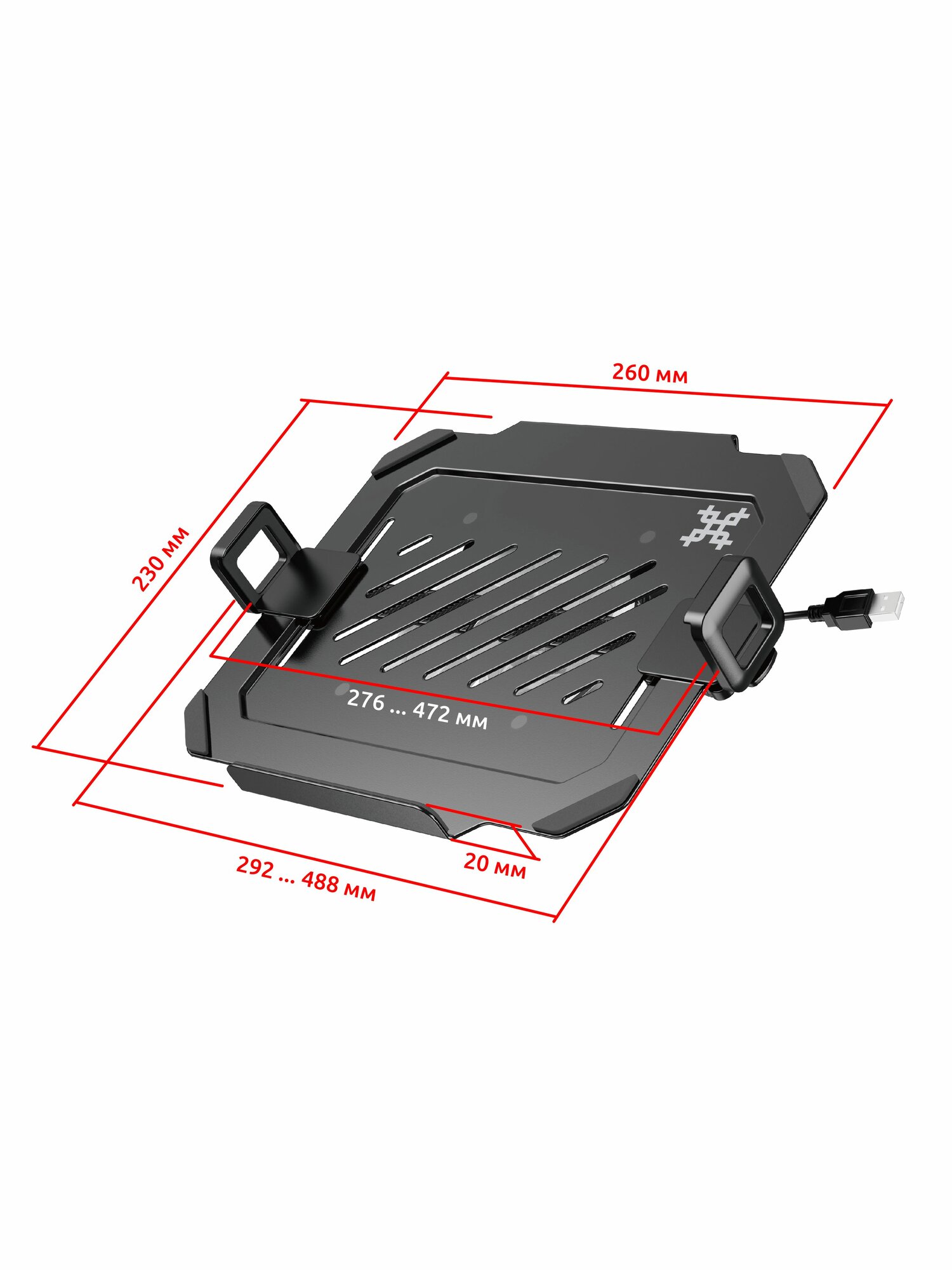 Подставка для ноутбука с охлаждением, 2 порта USB-A, LED-подсветка, 352х252 мм, BRAUBERG, 513617