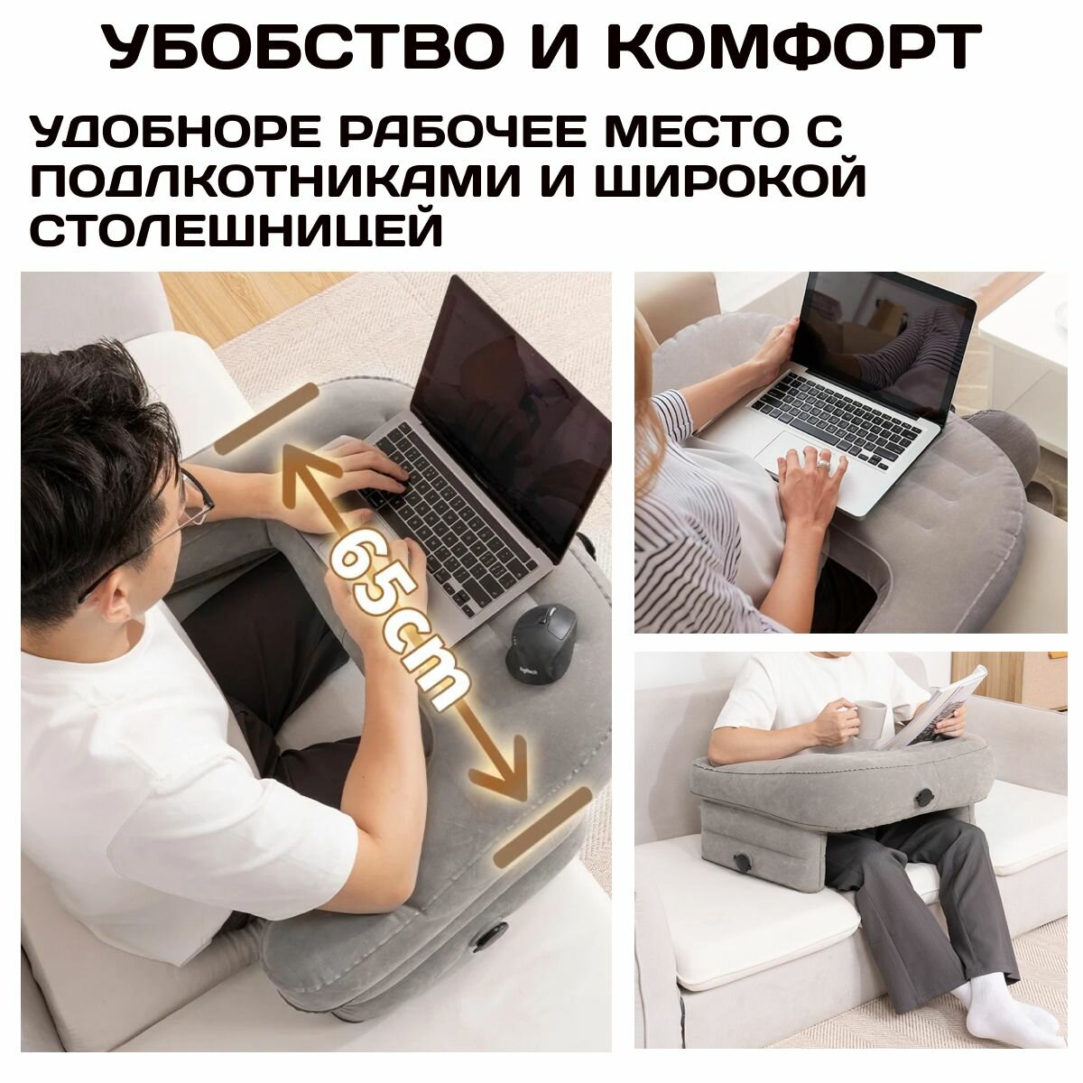 Надувной столик для чтения, подставка для ноутбука 65х60х35 интересное:
