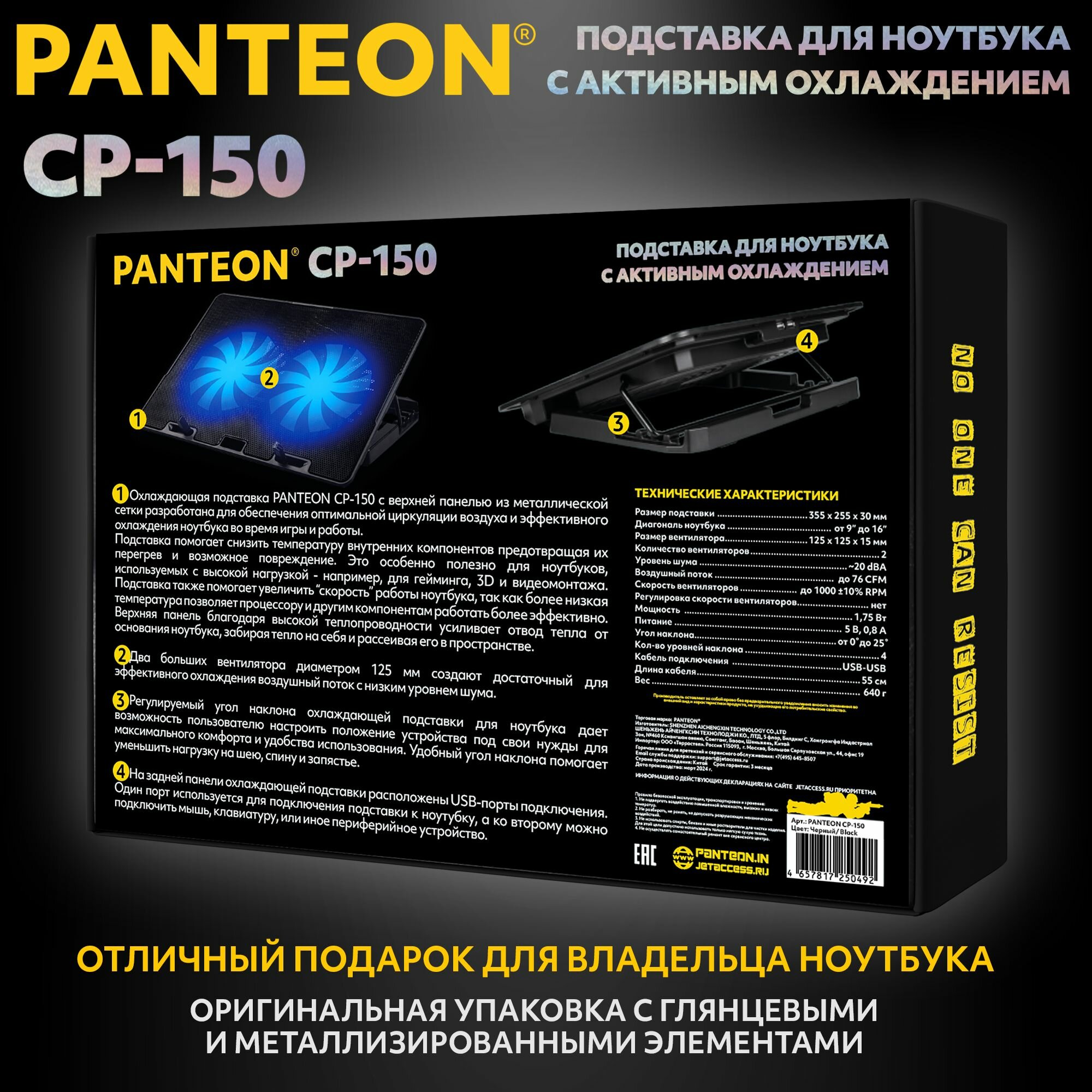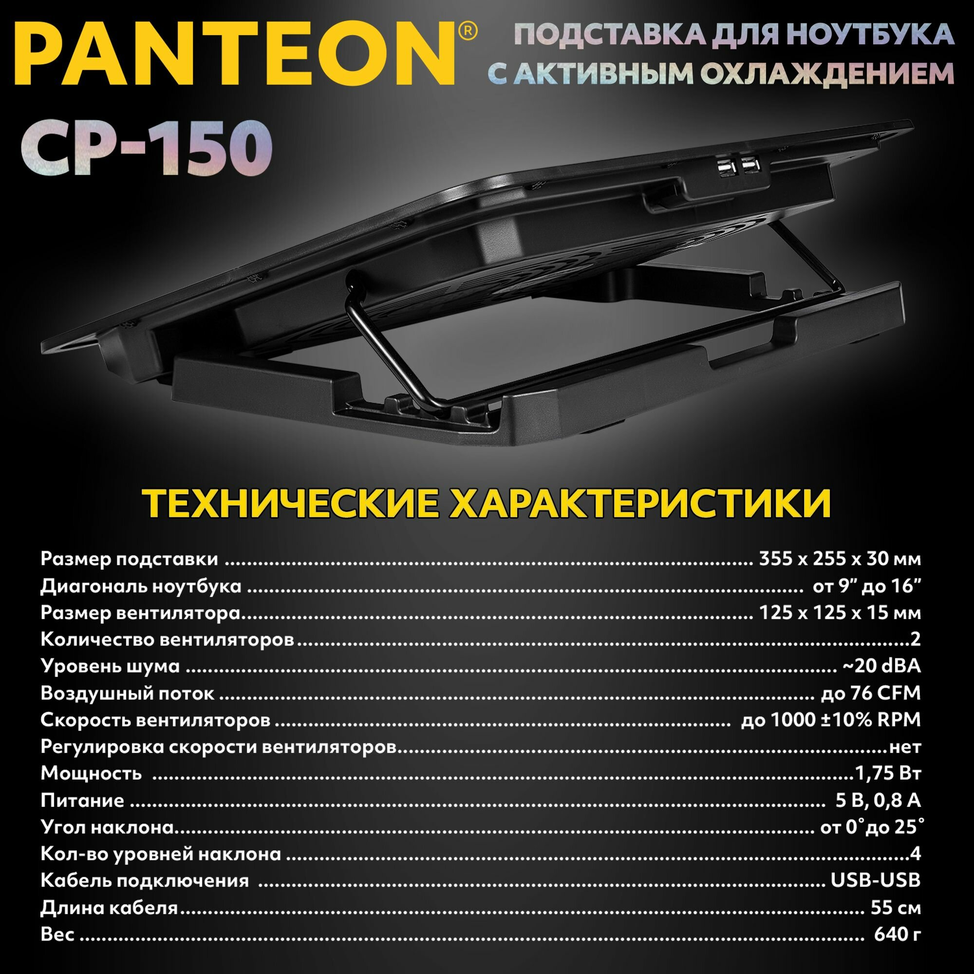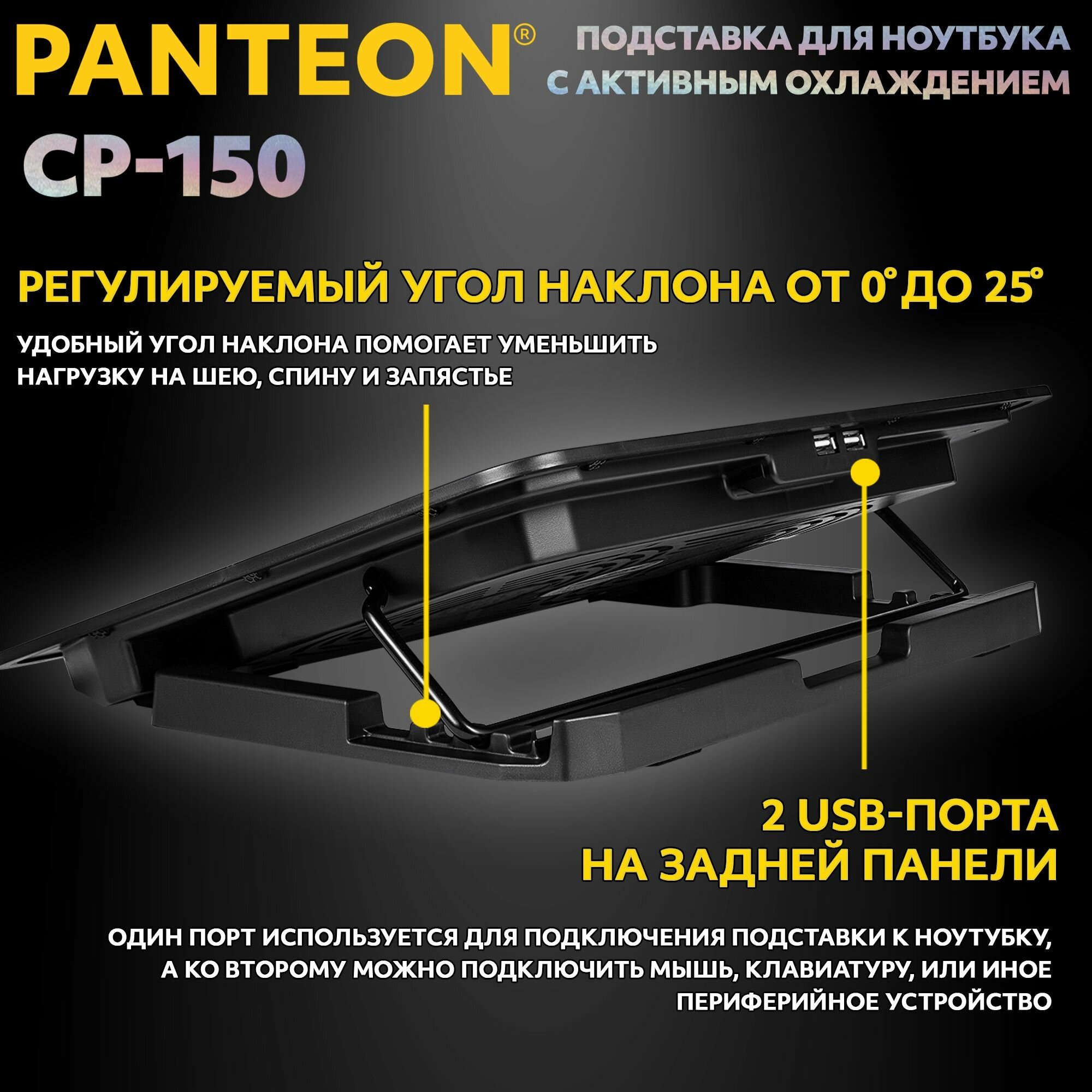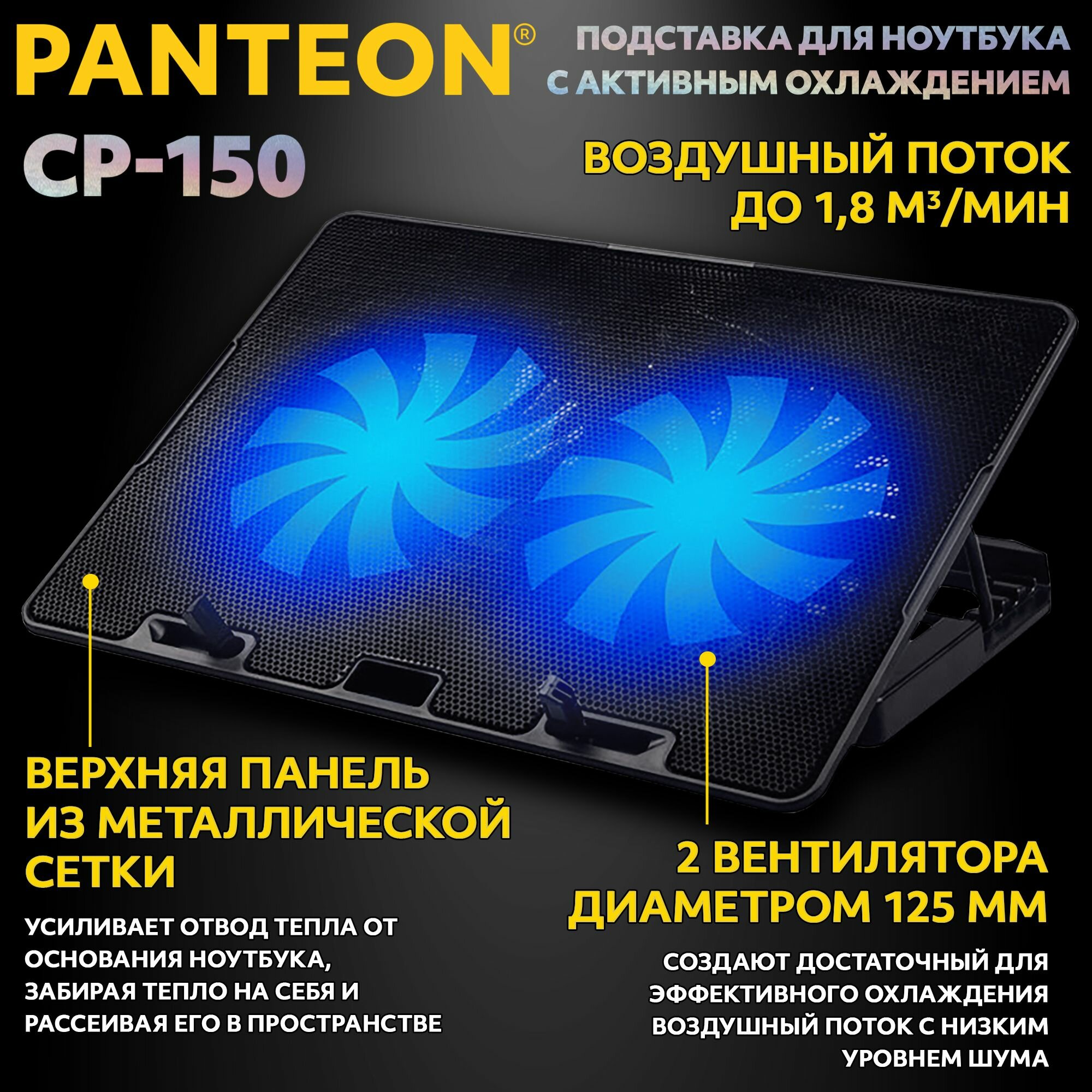 Подставка охлаждающая PANTEON CP-150, для ноутбуков от 9 до 16 дюймов, USB-порт, 2 вентилятора интересное: