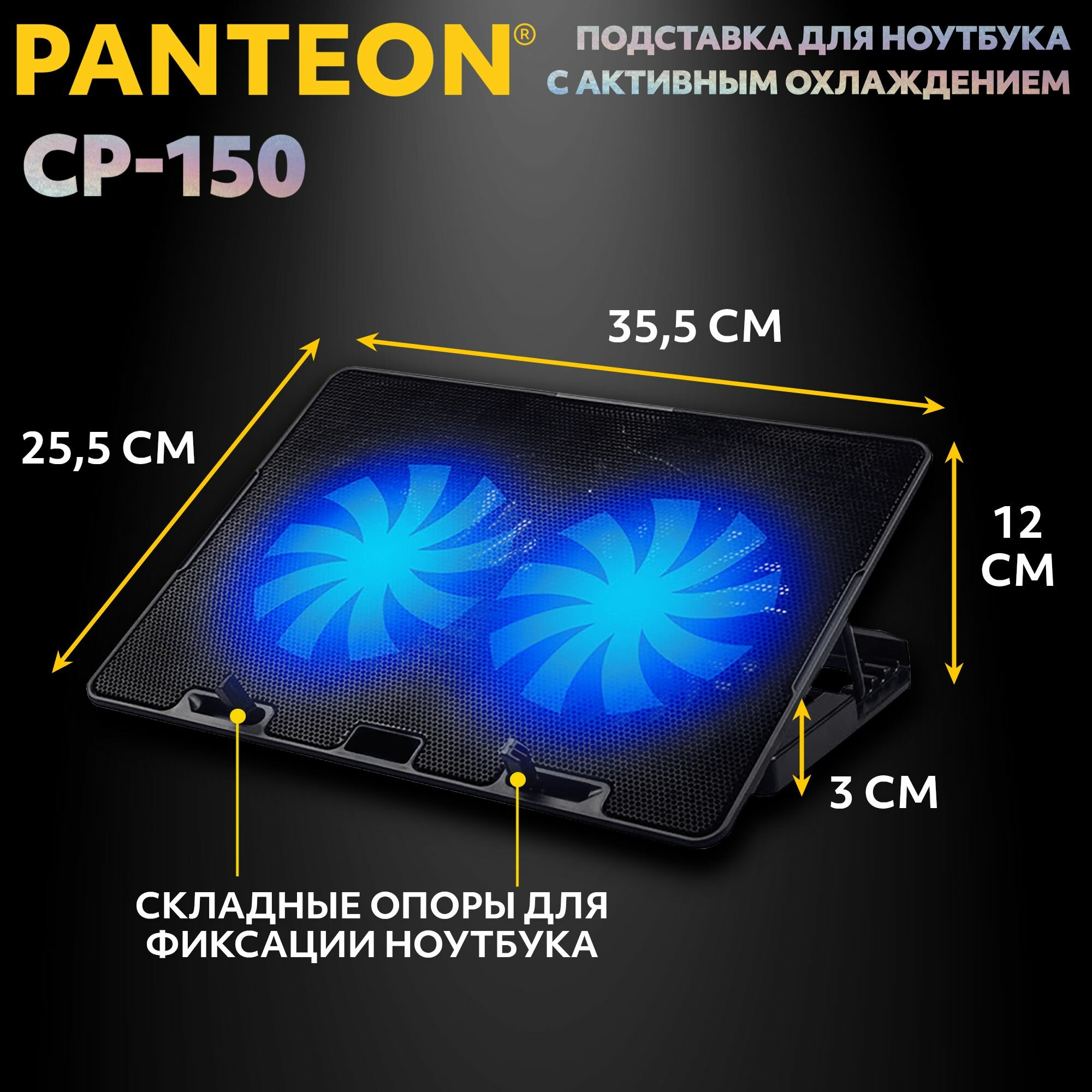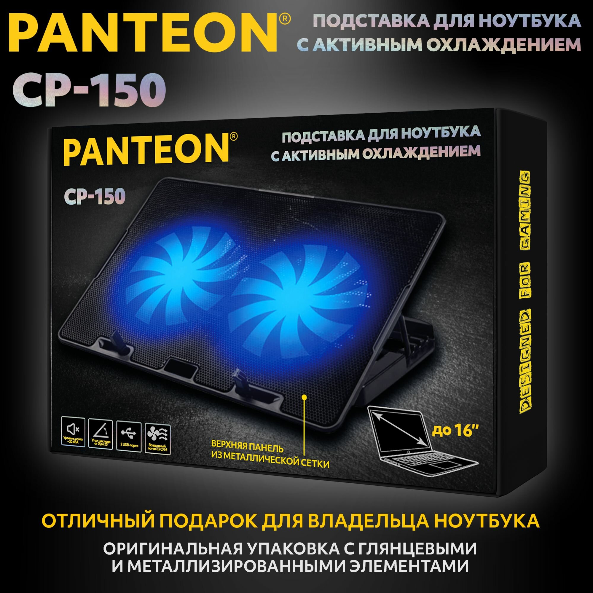 Купить Подставка охлаждающая PANTEON CP-150, для ноутбуков от 9 до 16 дюймов, USB-порт, 2 вентилятора