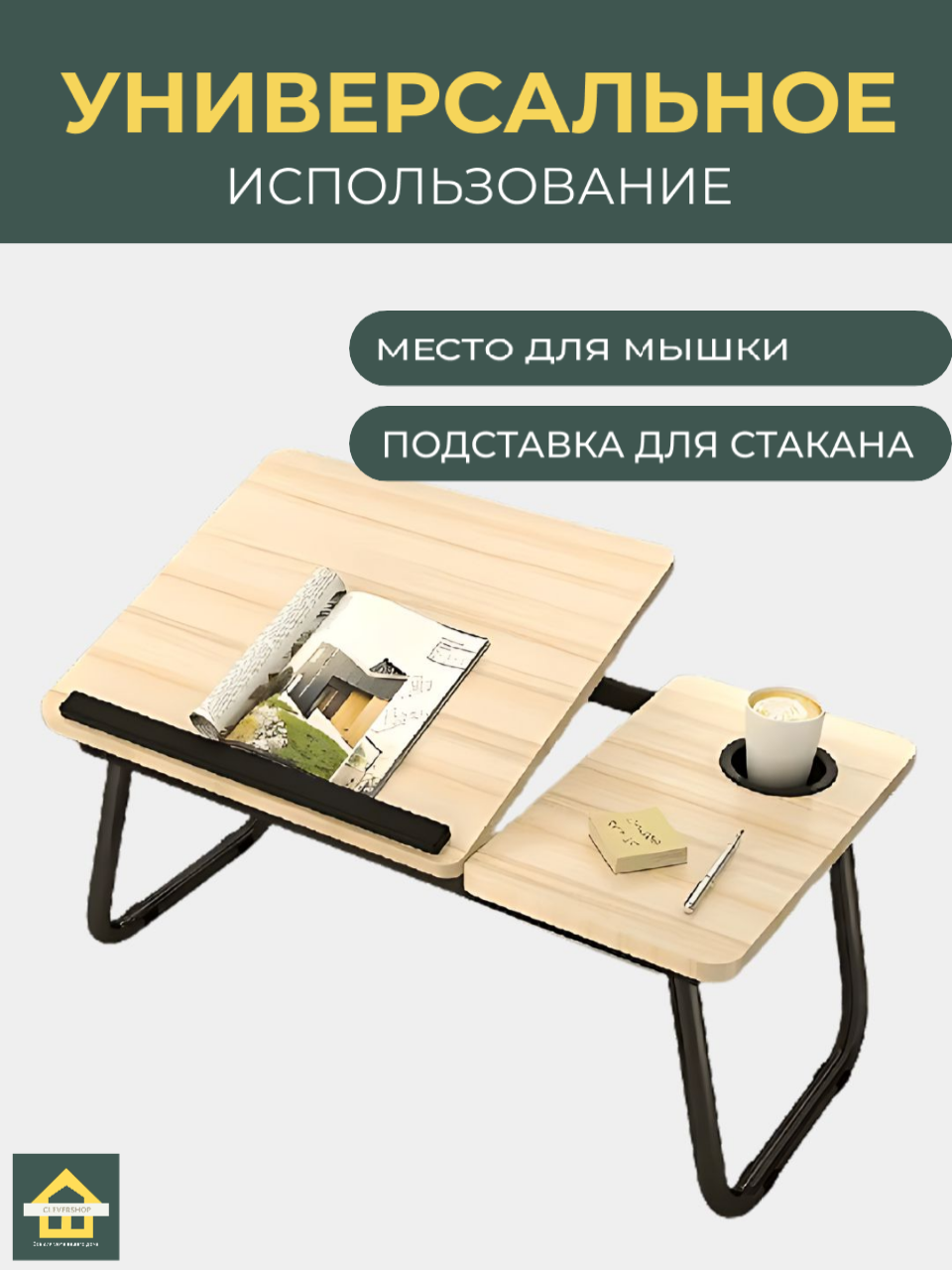 Купить Столик для ноутбука CleverShop с подставкой под мышку и подстаканником