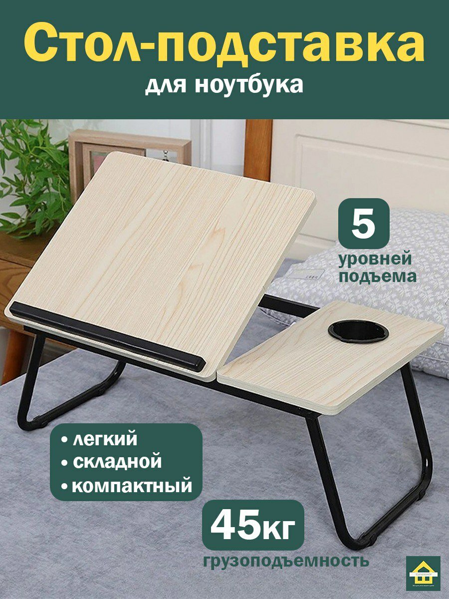 Столик для ноутбука CleverShop с подставкой под мышку и подстаканником интересное: