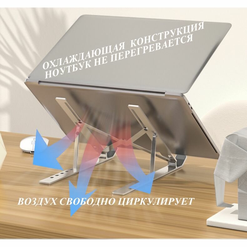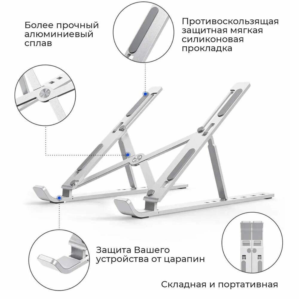 Подставка для ноутбука алюминиевая регулируемая складная /Металл интересное: