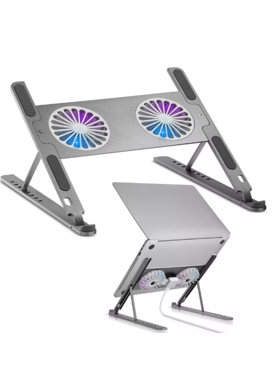 Регулируемая охлаждающая подставка для ноутбуков, 2 вентилятора, подсветка, 5 углов наклона, держатель для смартфона, 2 USB , для экрана 13"-19"